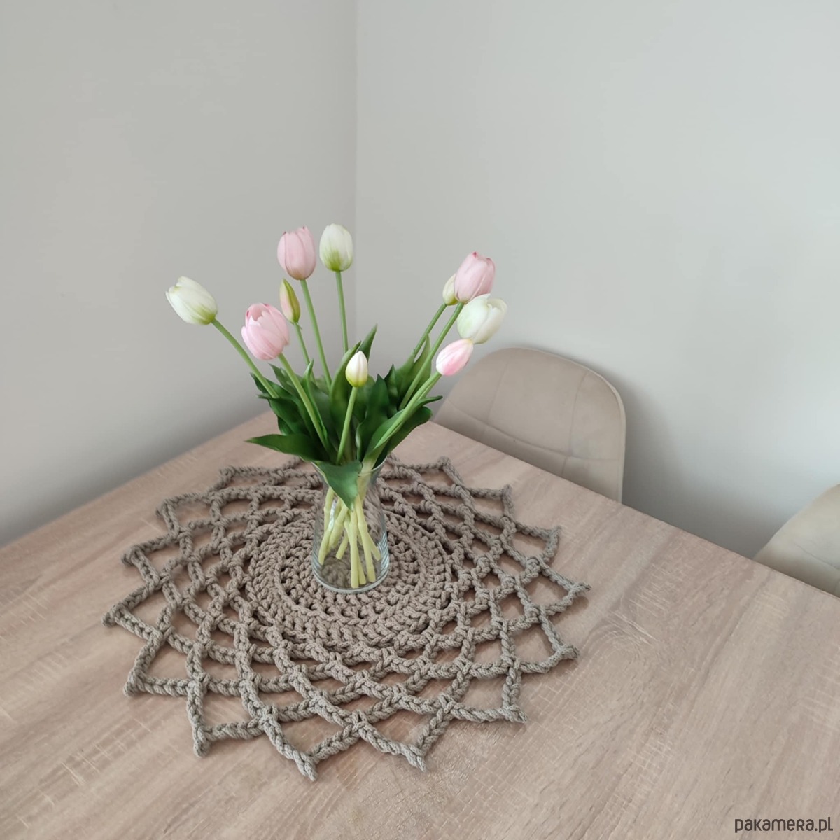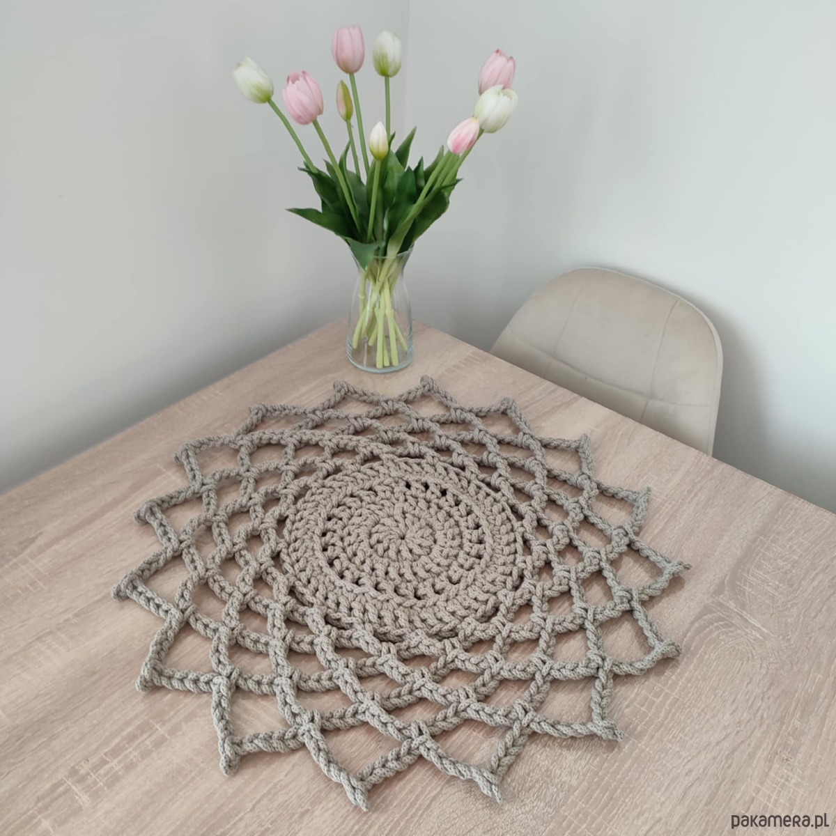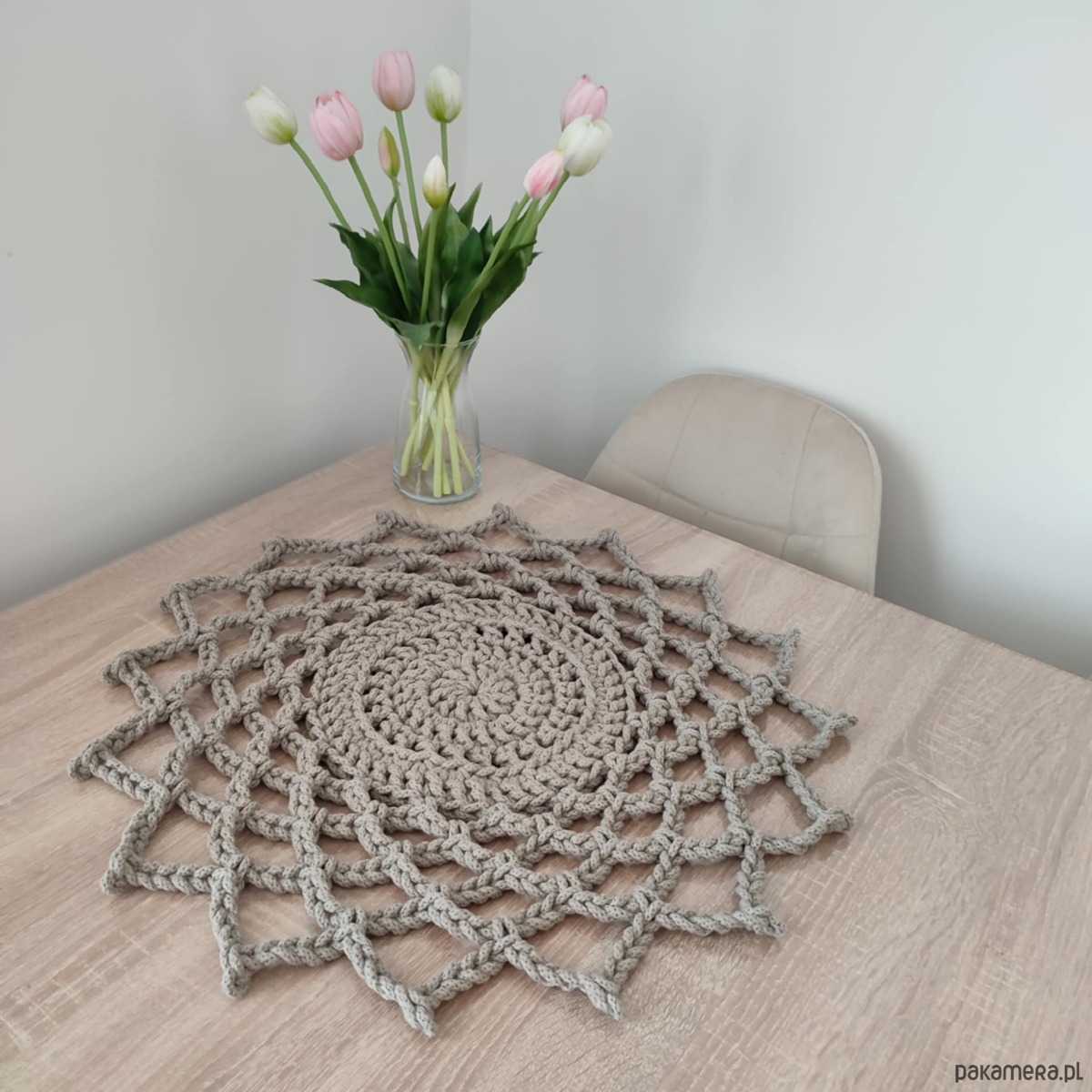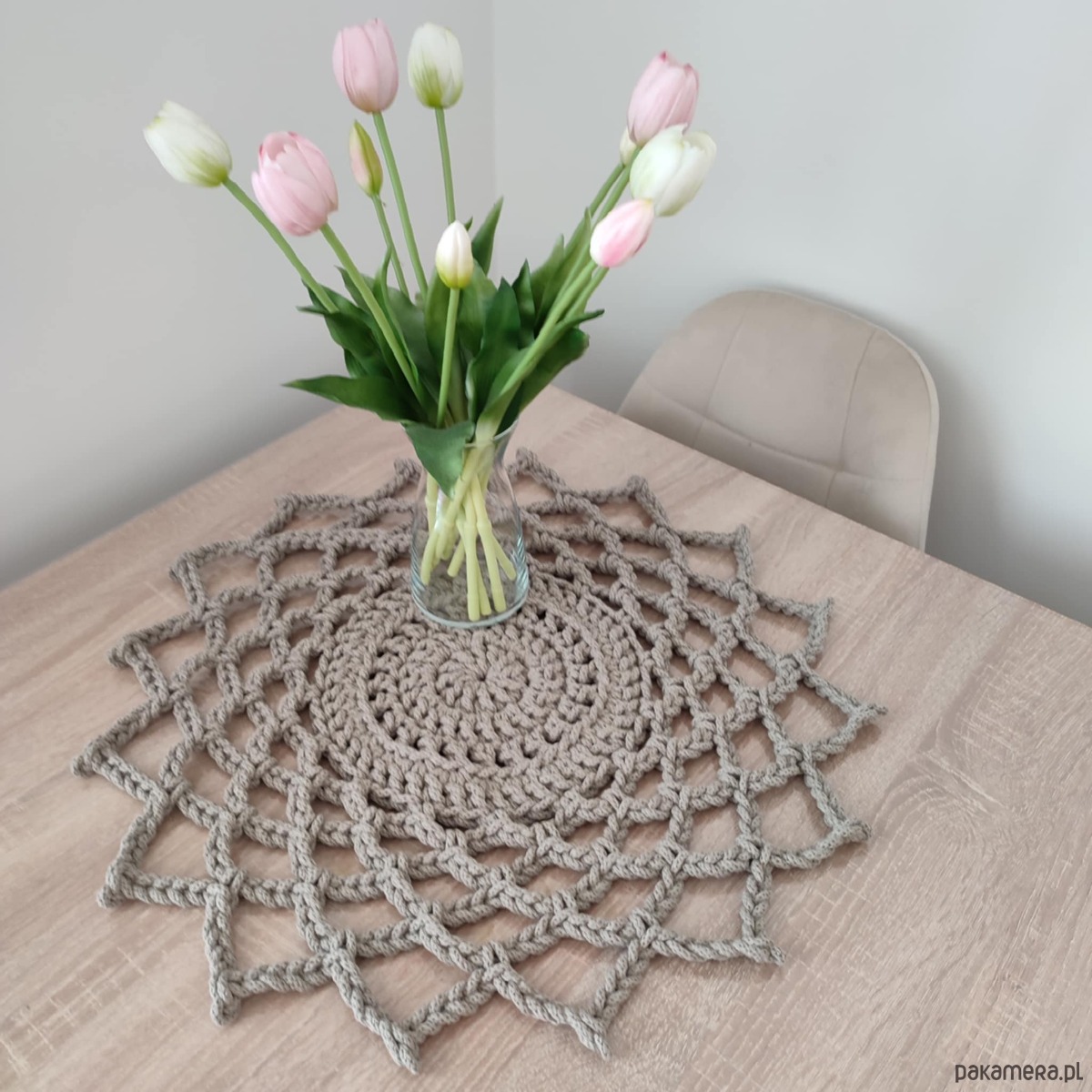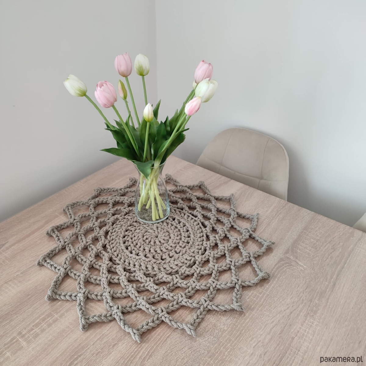Serweta o średnicy 55cm, wykonana metodą szydełkowania z polskiego sznurka bawełnianego 5mm.