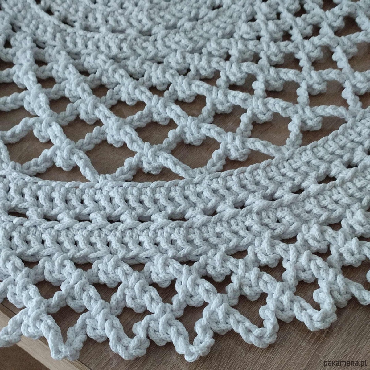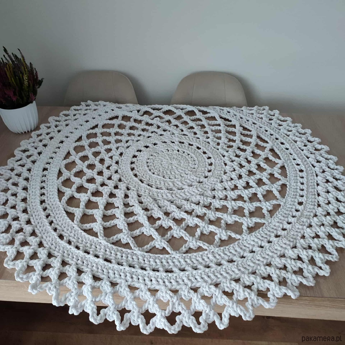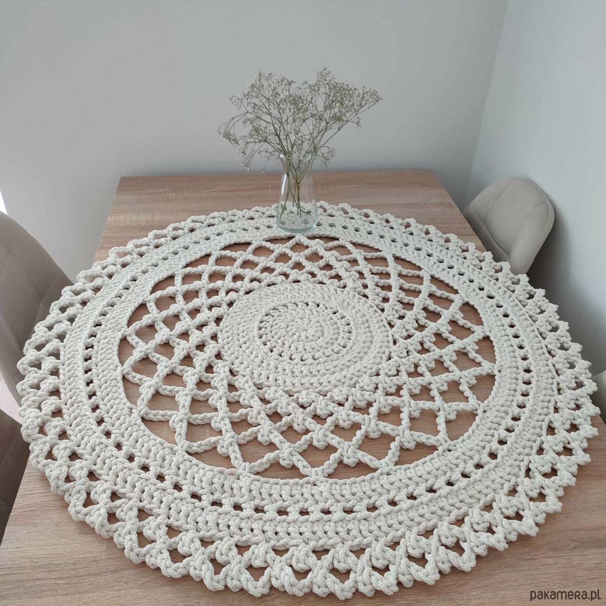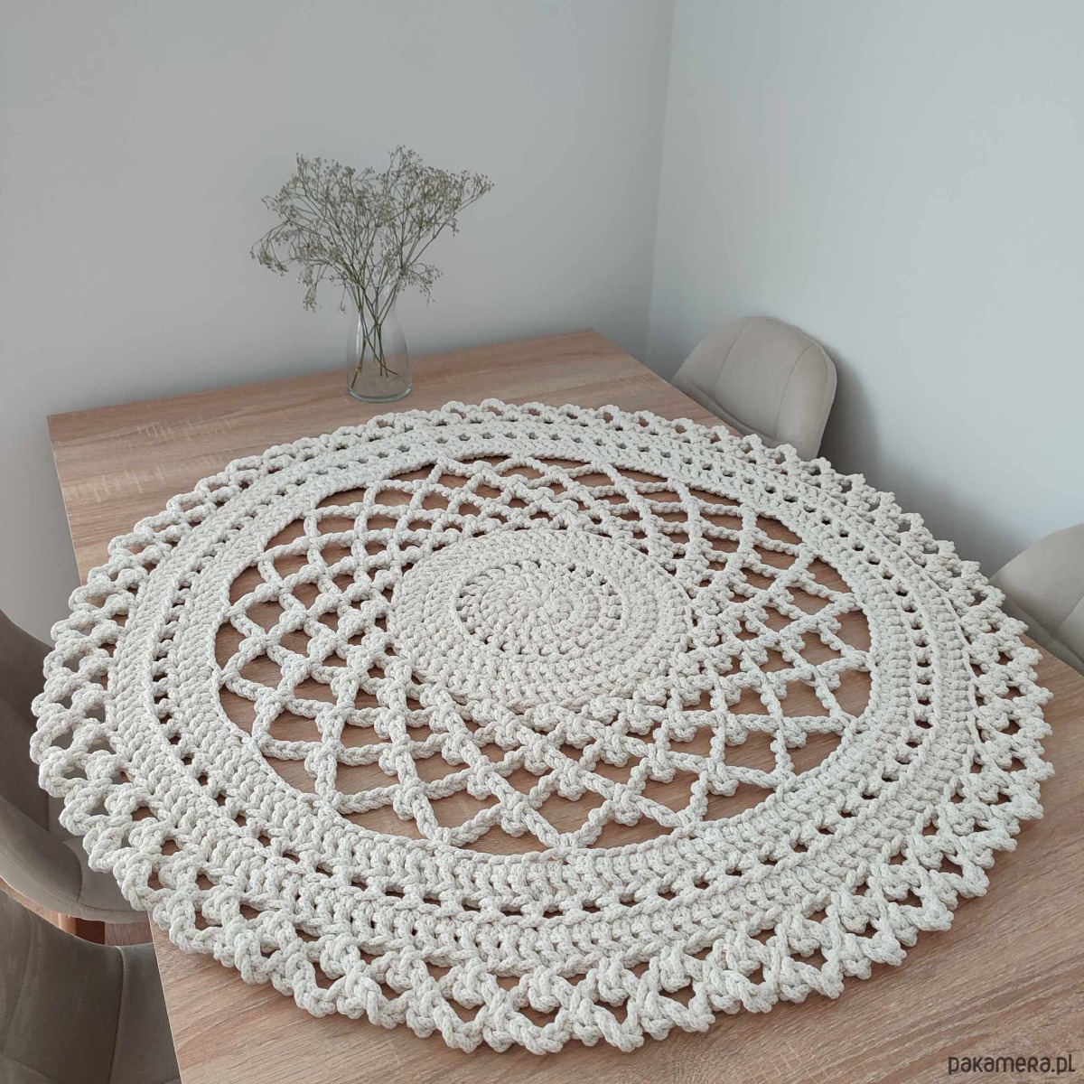 Serweta o średnicy 110cm, wykonana metodą szydełkowania z polskiego sznurka bawełnianego 5mm.