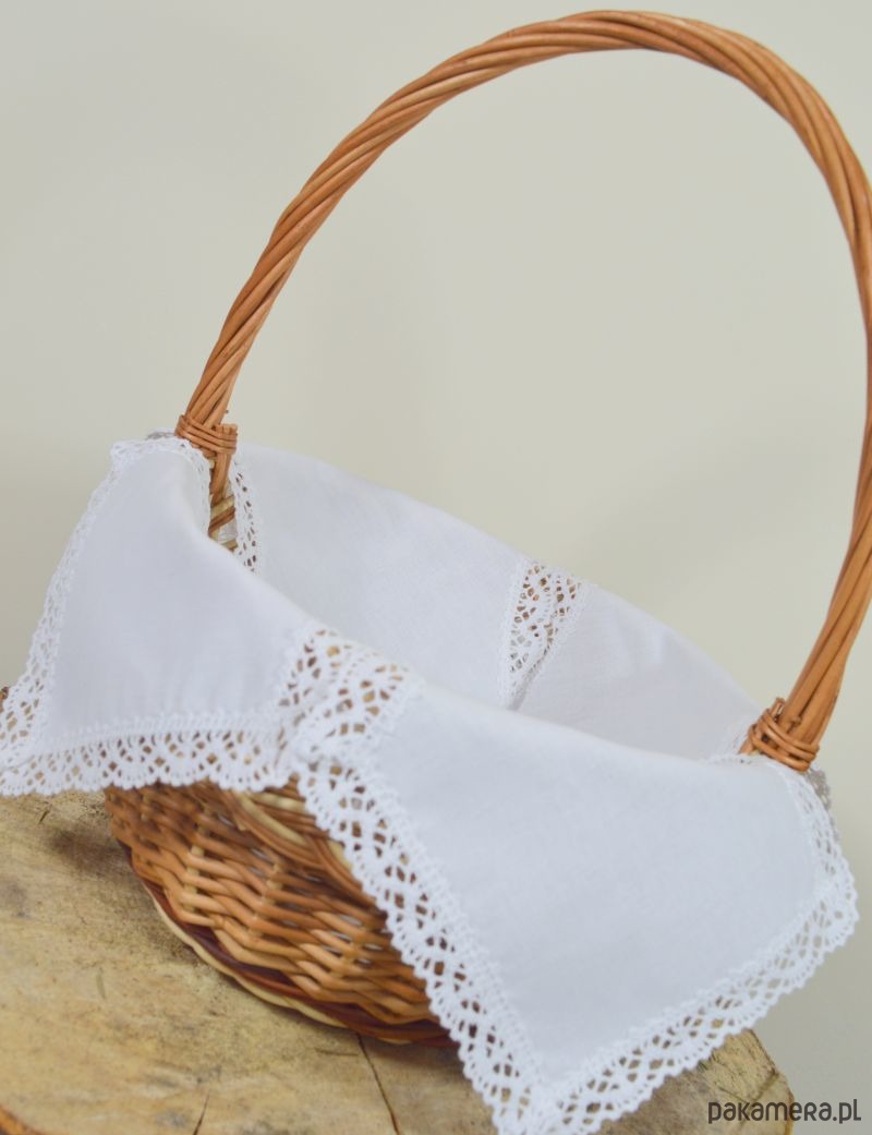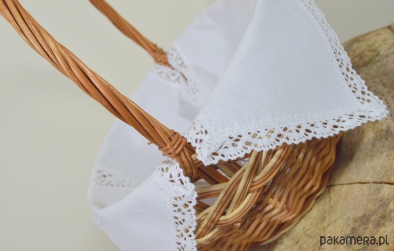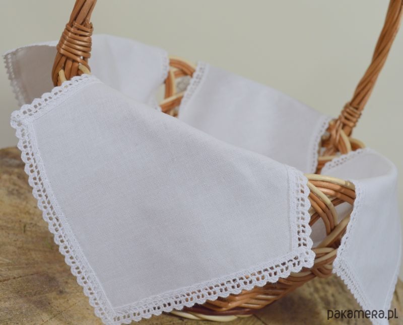 Przedstawiamy UNIWERSALNĄ serwetkę do koszyczka Wielkanocnego zdobioną bawełnianą koronką, wykonaną w naszej pracowni. Dla zwolenników klasycznego stylu!