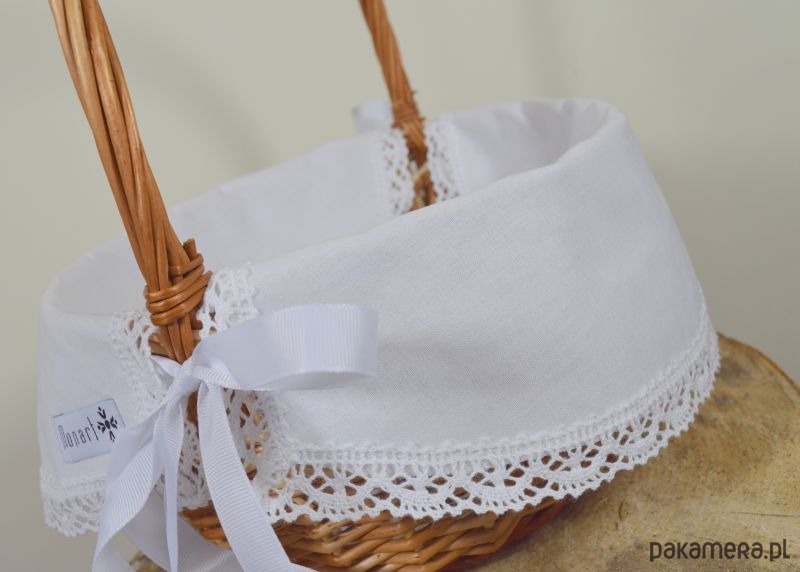 Przedstawiamy WIĄZANA, uniwersalną serwetkę do koszyczka Wielkanocnego zdobioną bawełnianą koronką, wykonaną w naszej pracowni. Dla zwolenników klasycznego stylu!