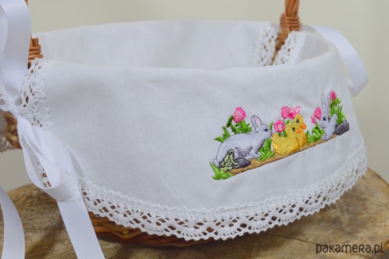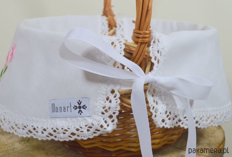 Przedstawiamy WIĄZANA, uniwersalną serwetkę do koszyczka Wielkanocnego zdobioną bawełnianą koronką, wykonaną w naszej pracowni. Dla zwolenników klasycznego stylu!