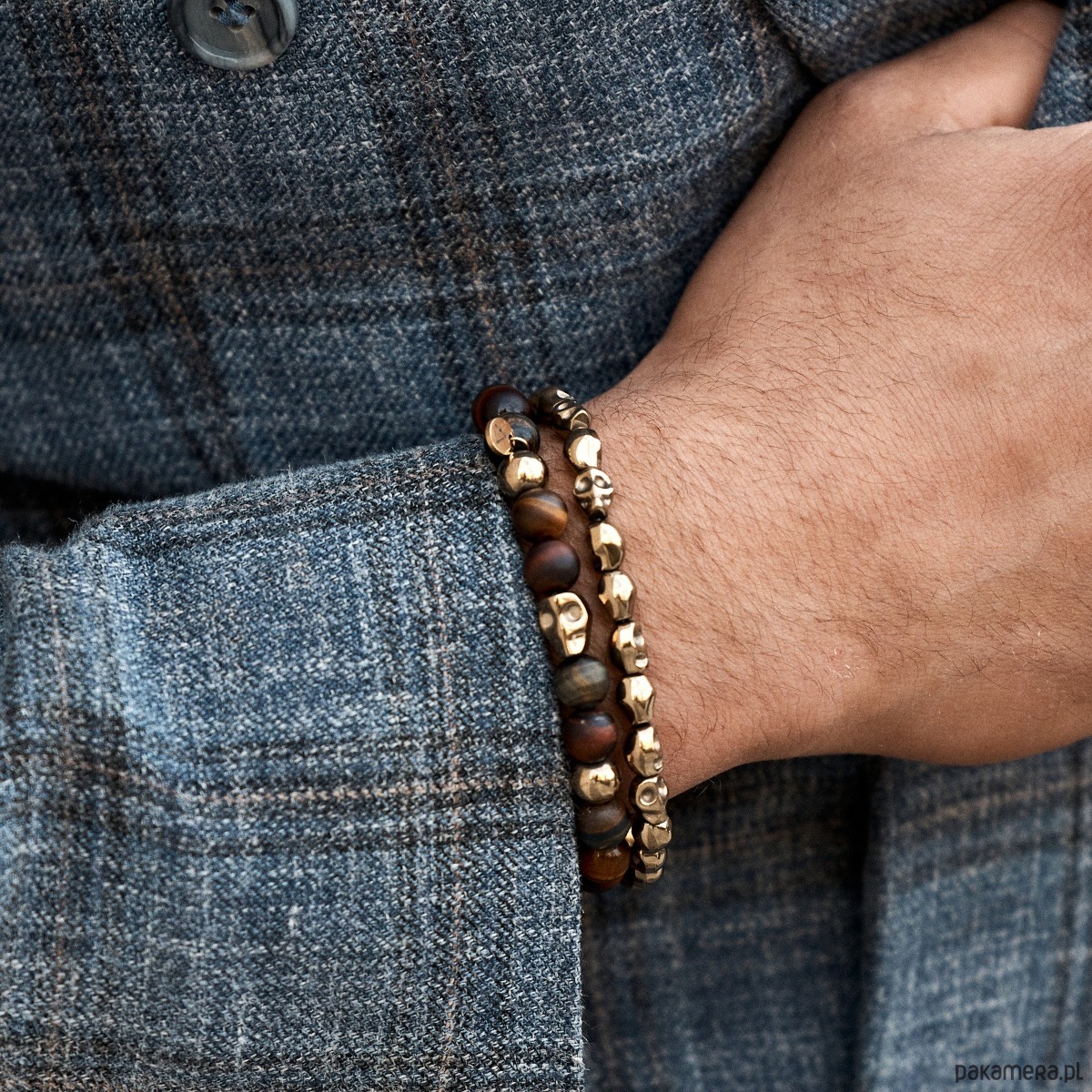 Set 2 męskich bransoletek - elegancki brąz ze złotem