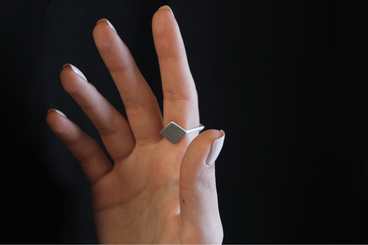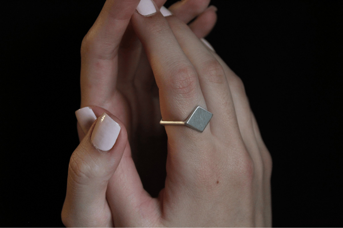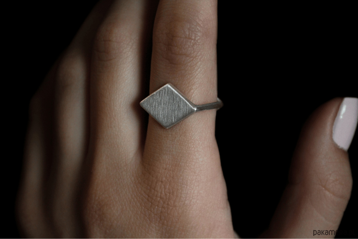 Pierścionek ma kwadratowy przekrój.