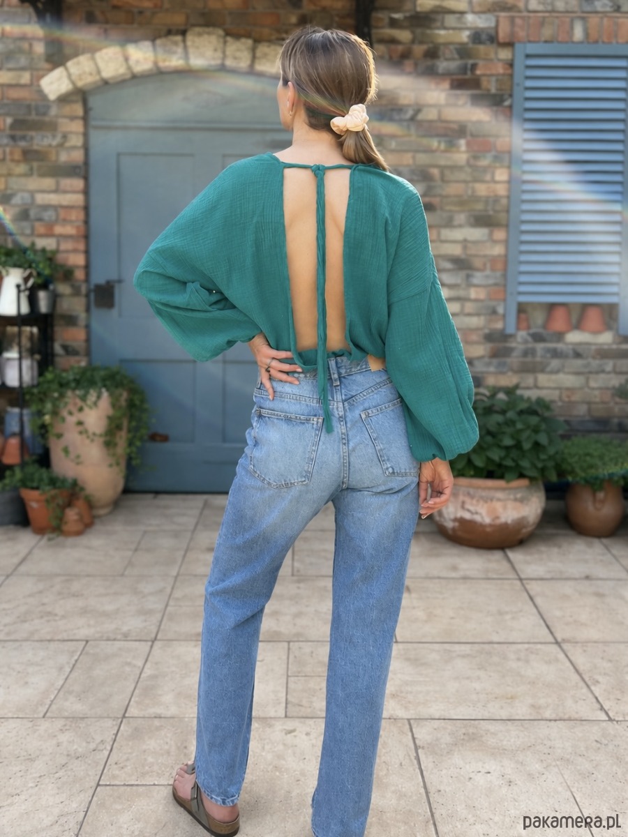 She's Like The Wind / muślinowa bluzka z otwartymi plecami - tropical green