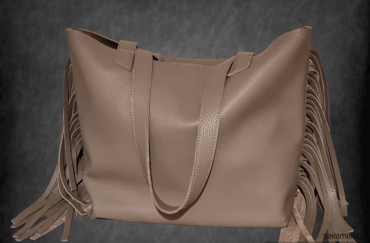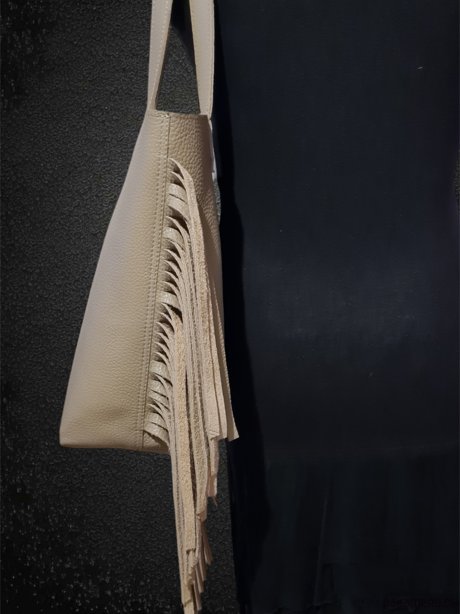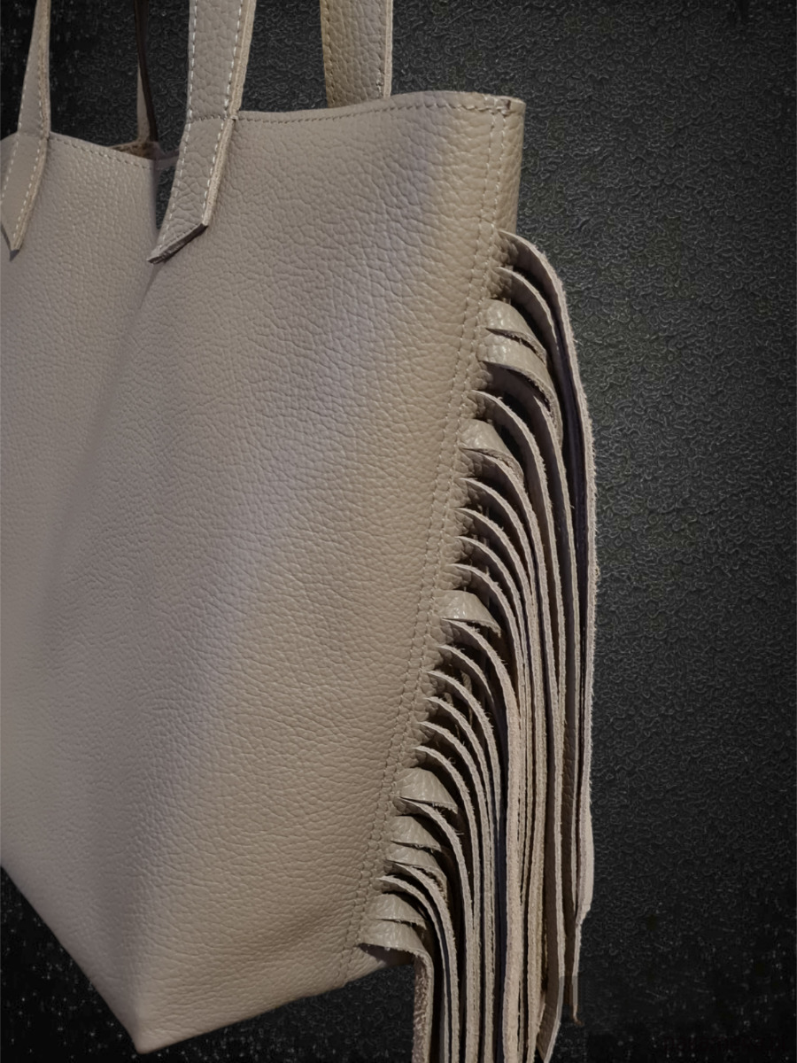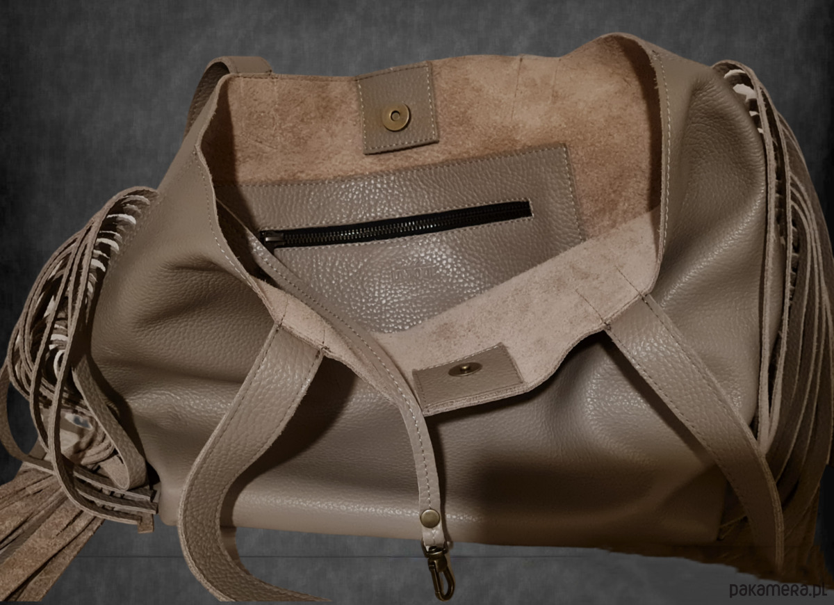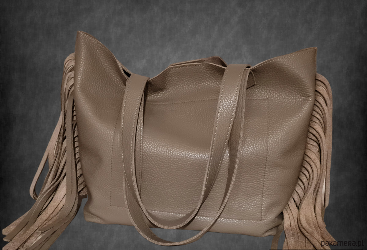 Duża Shopperka z frędzlami beżowa. Duża torba Shopper Bag skóra naturalna