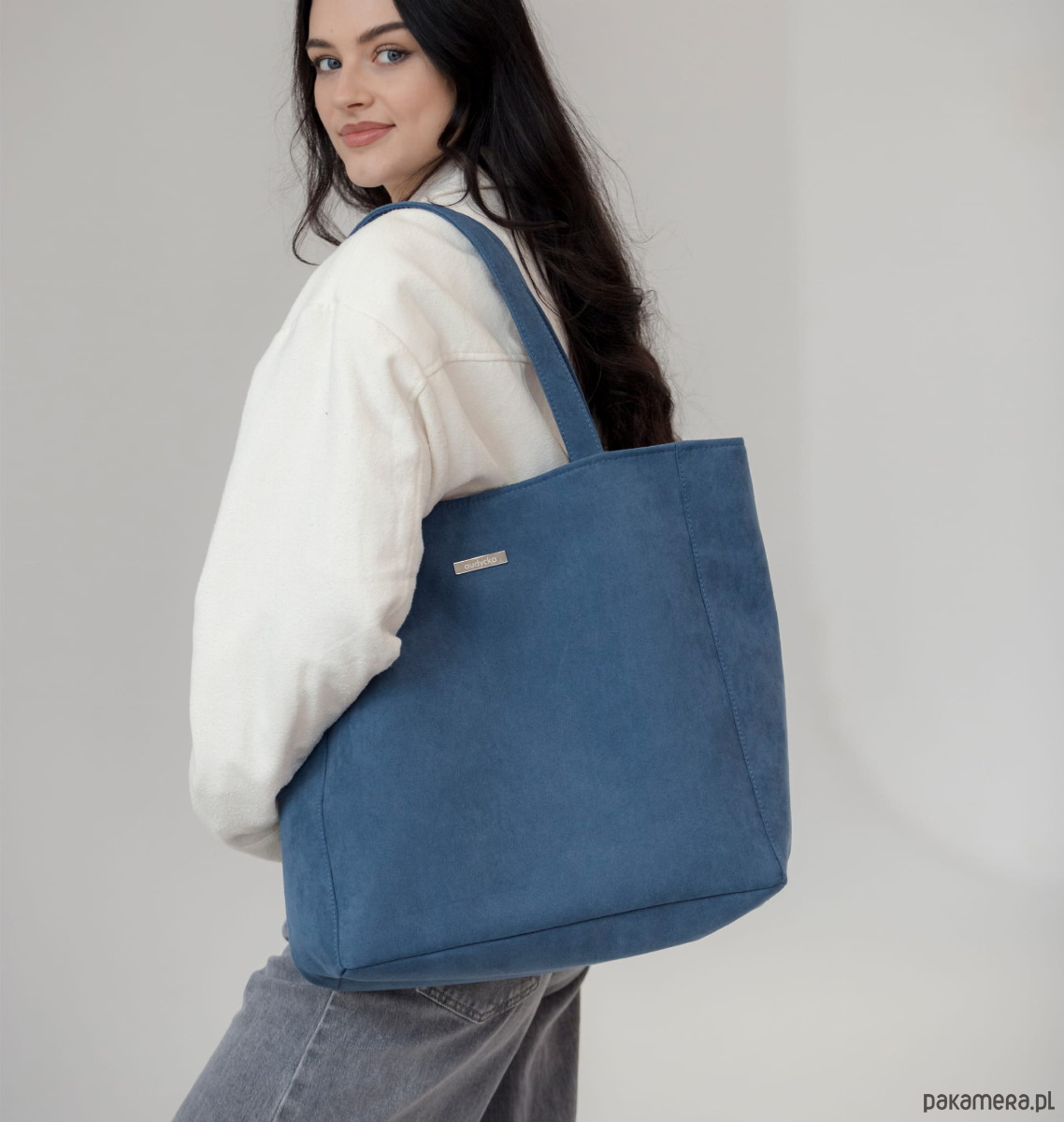 Duża torba shopper BASIC z nubuku tapicerskiego do noszenia na ramieniu.