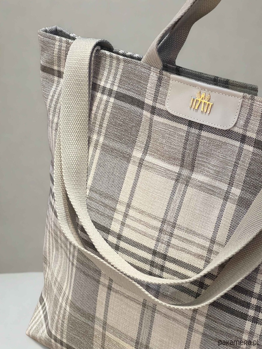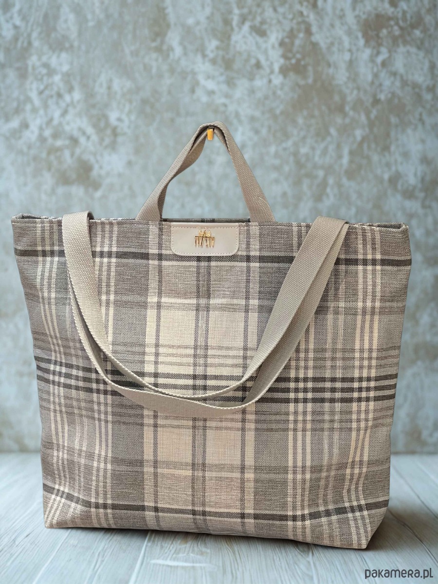 Torebka Shopper GMB krata jasna z zamkiem to pojemny model typu shopper, uszyty w polskiej szwalni w limitowanej ilości.