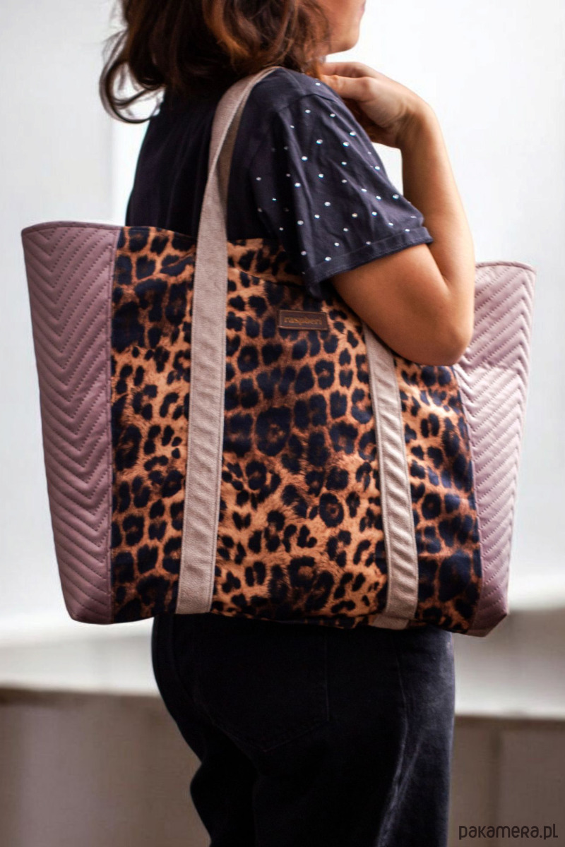 Duża torba typu shopperka w kolorze różowo-brązowym wykonana z weluru. Pasy z beżowego weluru.