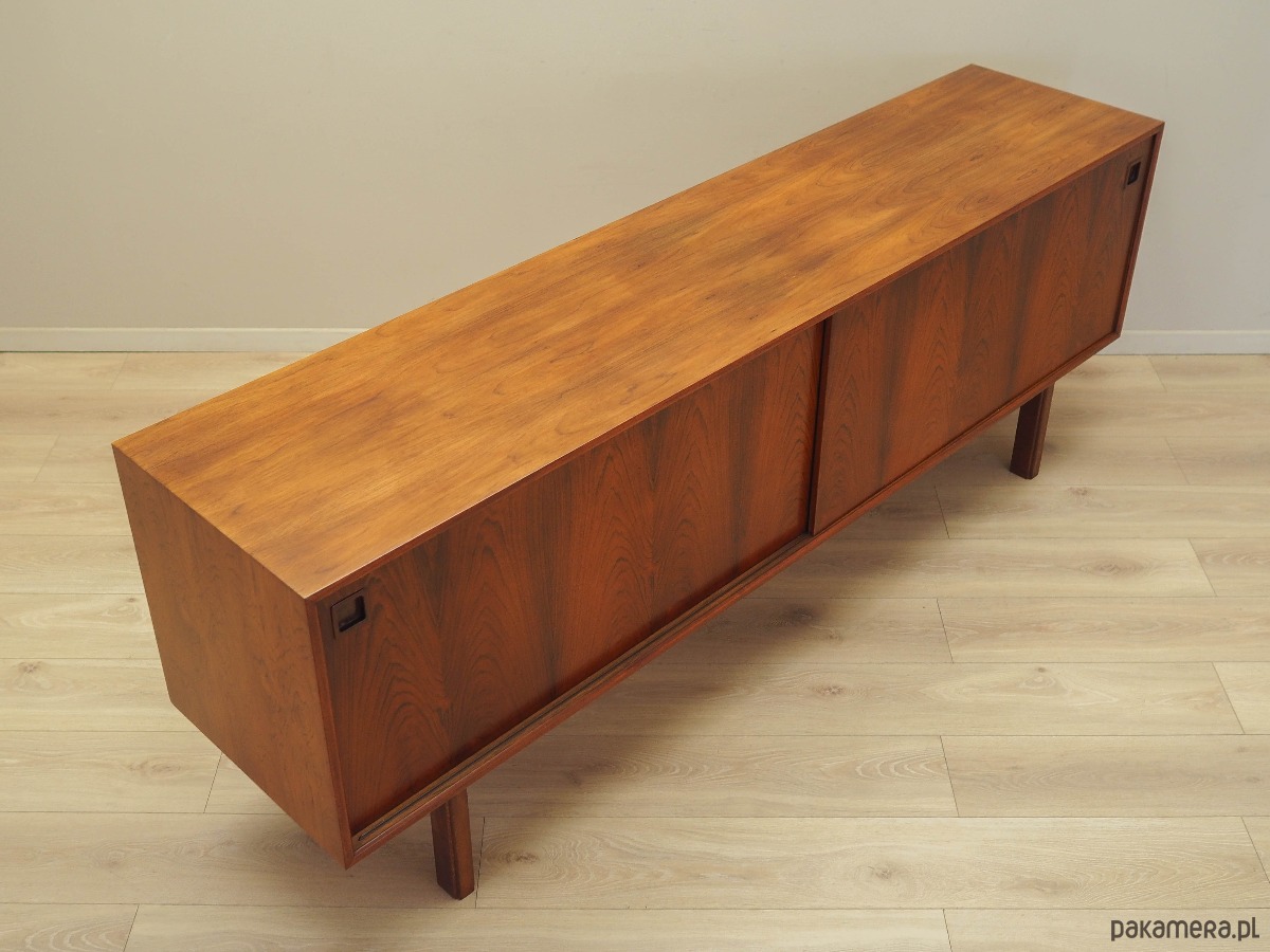 Sideboard wykonany został w latach 70-tych, wyprodukowany przez znaną duńską manufakturę Omann Jun.