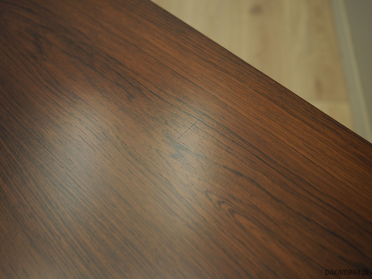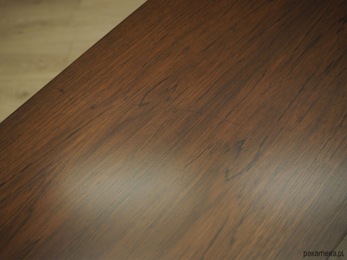 Stan: Powierzchnia po odświeżeniu. Widoczne drobne zarysowania oraz uzupełnione ubytki forniru. Większe ślady użytkowania zawsze przedstawiamy na zdjęciach. Produkt przygotowany bezpośrednio do użytkowania.