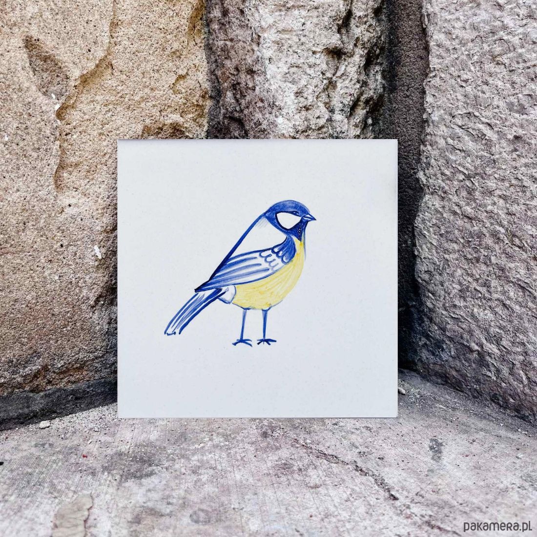 Sikorka namalowana na kafelku