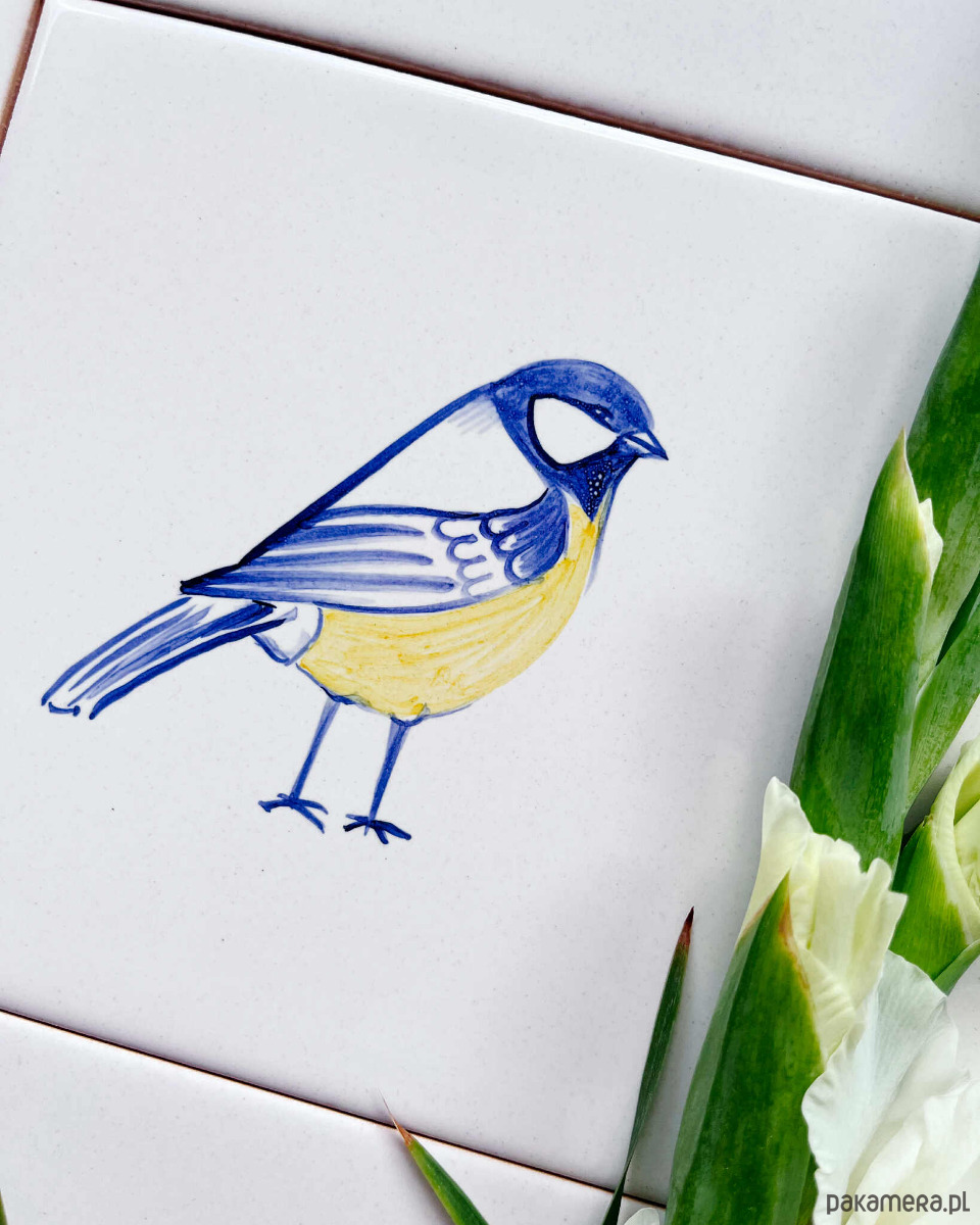 Każdy kafelek maluję ręcznie więc nie znajdziesz dwóch identycznych. Widoczne są pociągnięcia pędzla i drobne różnice w odcieniach.
