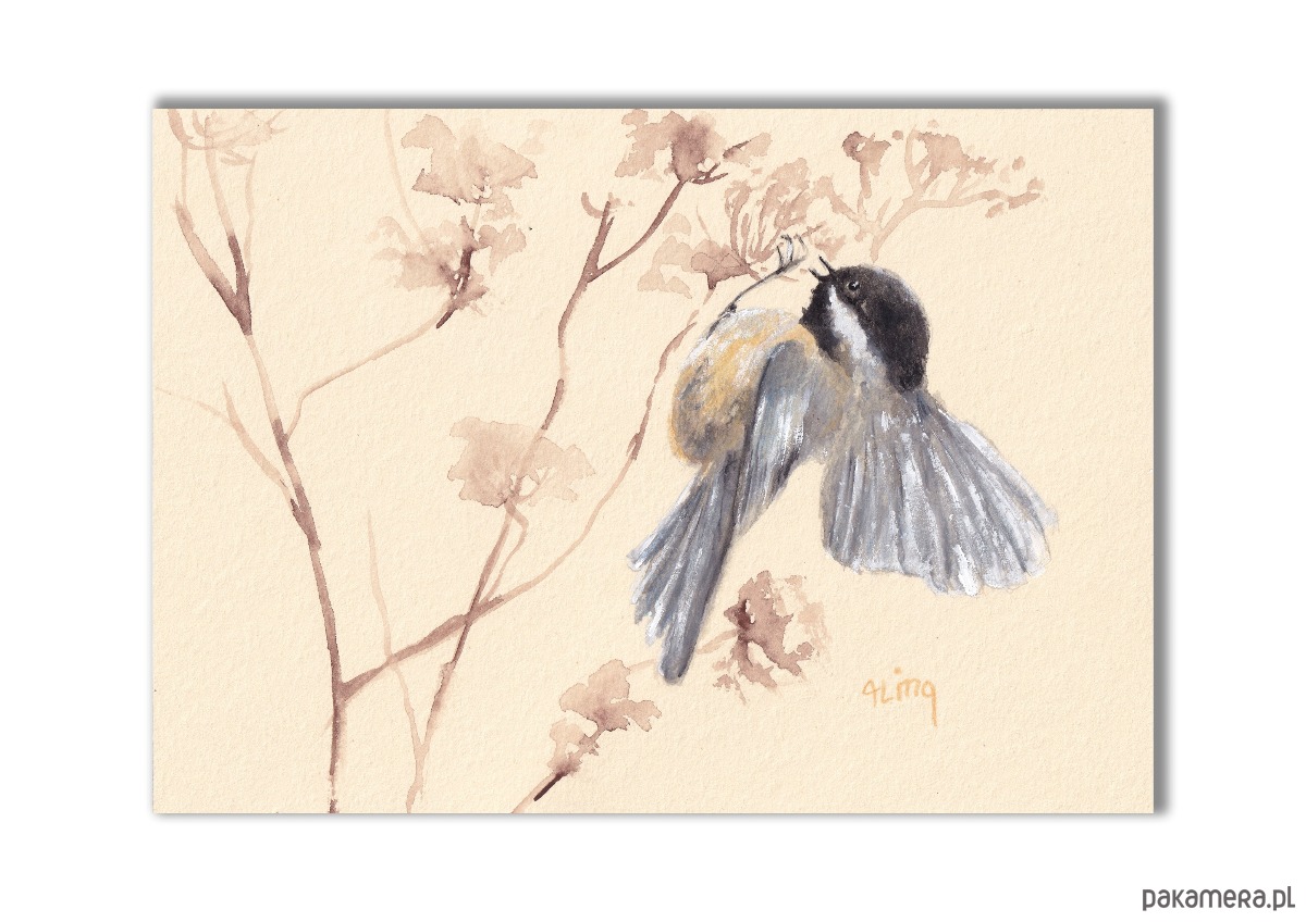 Akwarela ręcznie malowana, wykonana farbami akwarelowymi znanych producentów; na wysokogatunkowym 300g papierze (14,5 x 20cm).