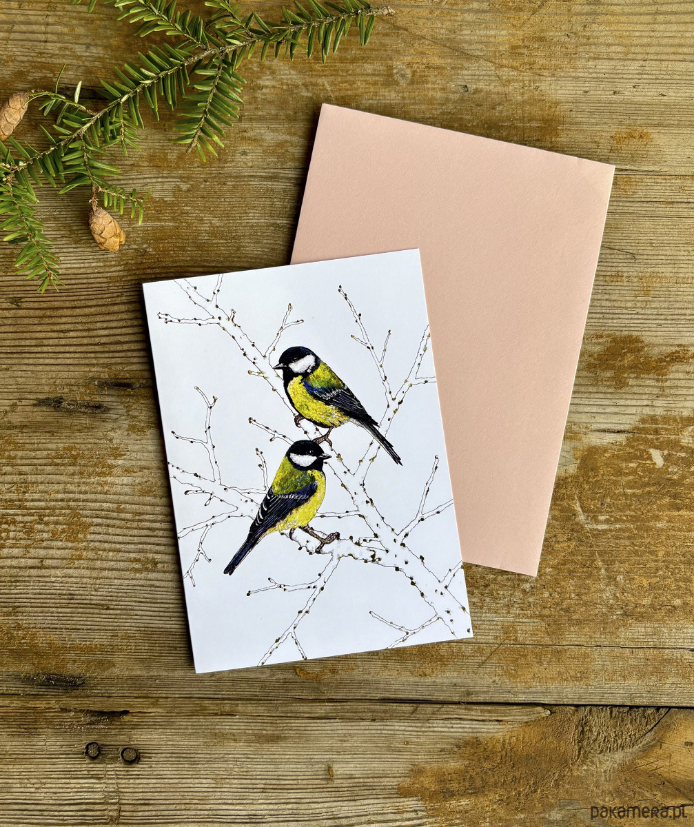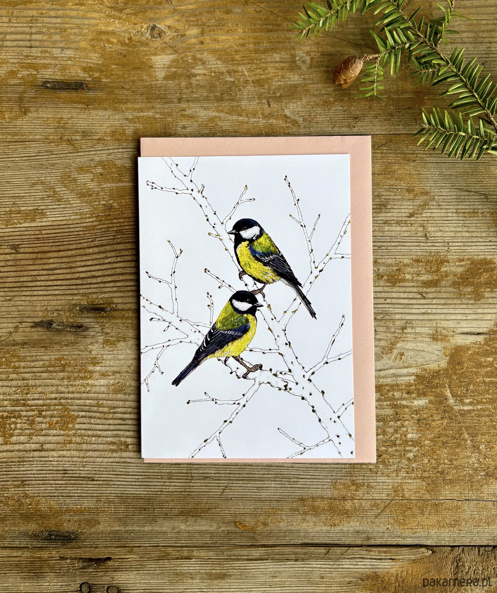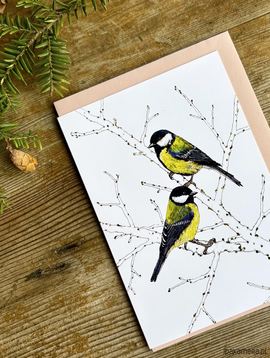 Sikorki bogatki- Kartka- Grafika- Ilustracja- Ptaki