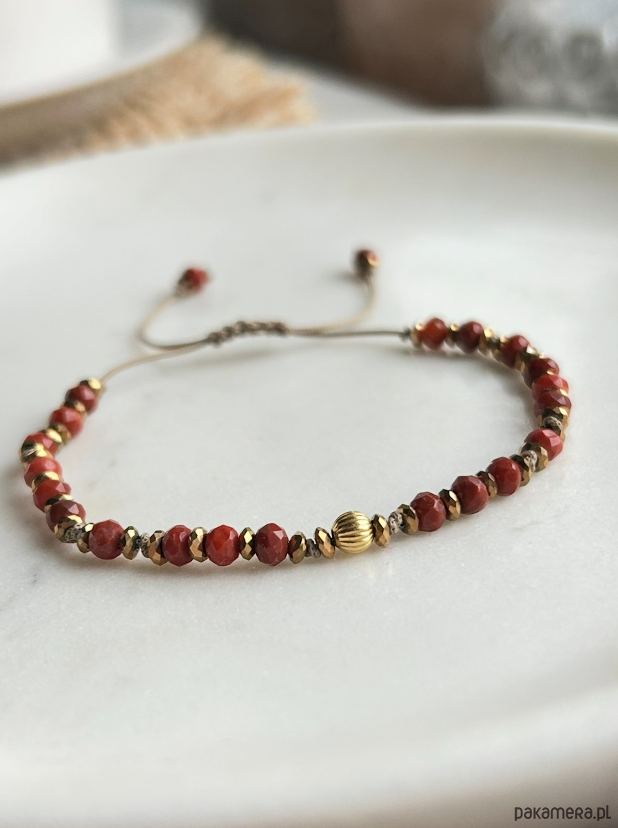 Jaspis to kamień , który oczyszcza mysli, przynosi życiową mądrość i kreatywność. To minerał wewnętrznej siły, pomaga przyciągnąć do życia pomyślność, jest wsparciem przy rozwiązywaniu problemów, kompasem w drodze do spełnienia marzeń. Jaspis czerwony ma potężne działanie ochronne - chroni nas przed wszelkiego rodzaju urokami, złymi czarami i negatywnymi energiami. Oczyszcza życiową energię, uczy nas panowania nad sobą, sztuki przezwyciężania własnych słabości, regeneruje siły witalne.