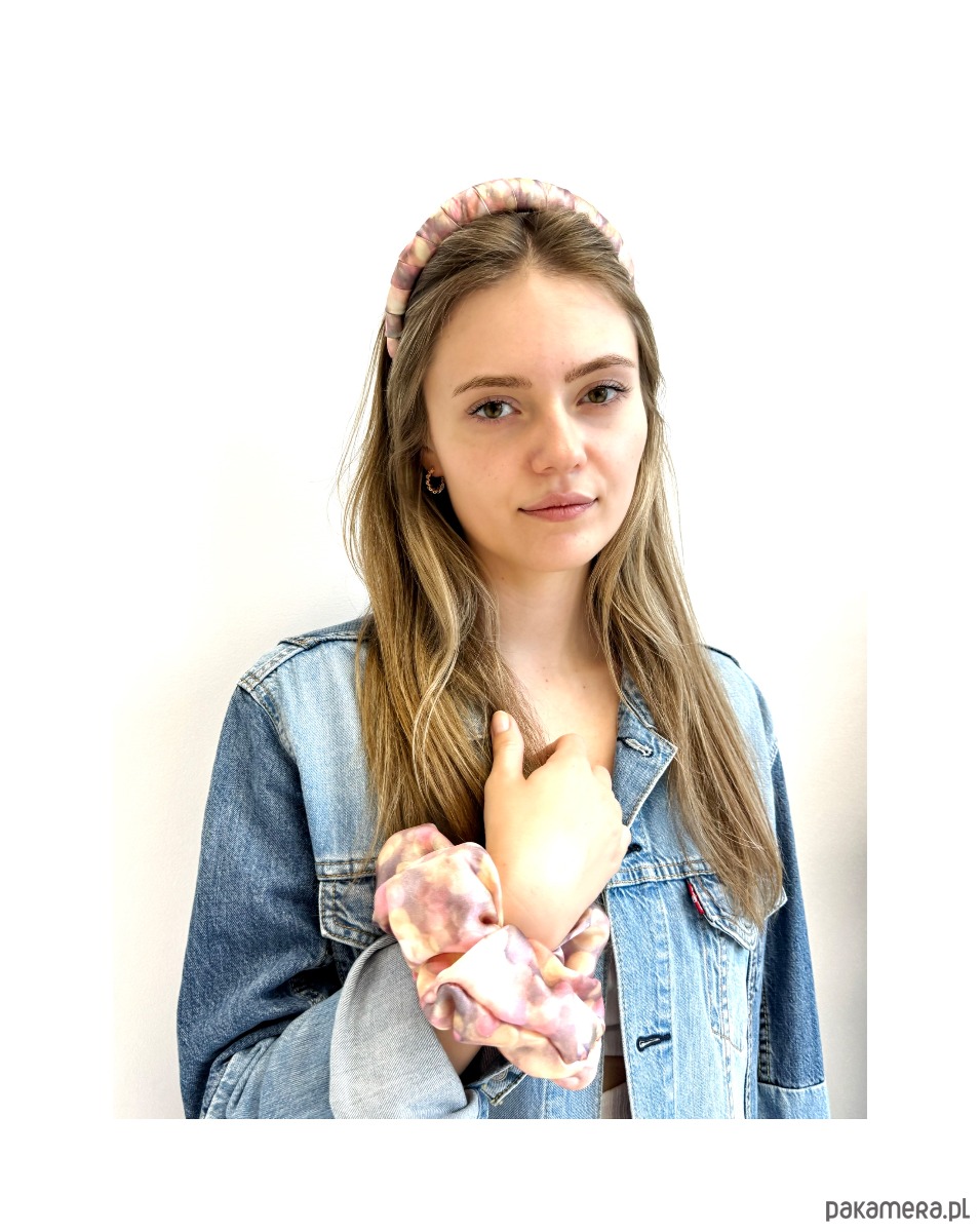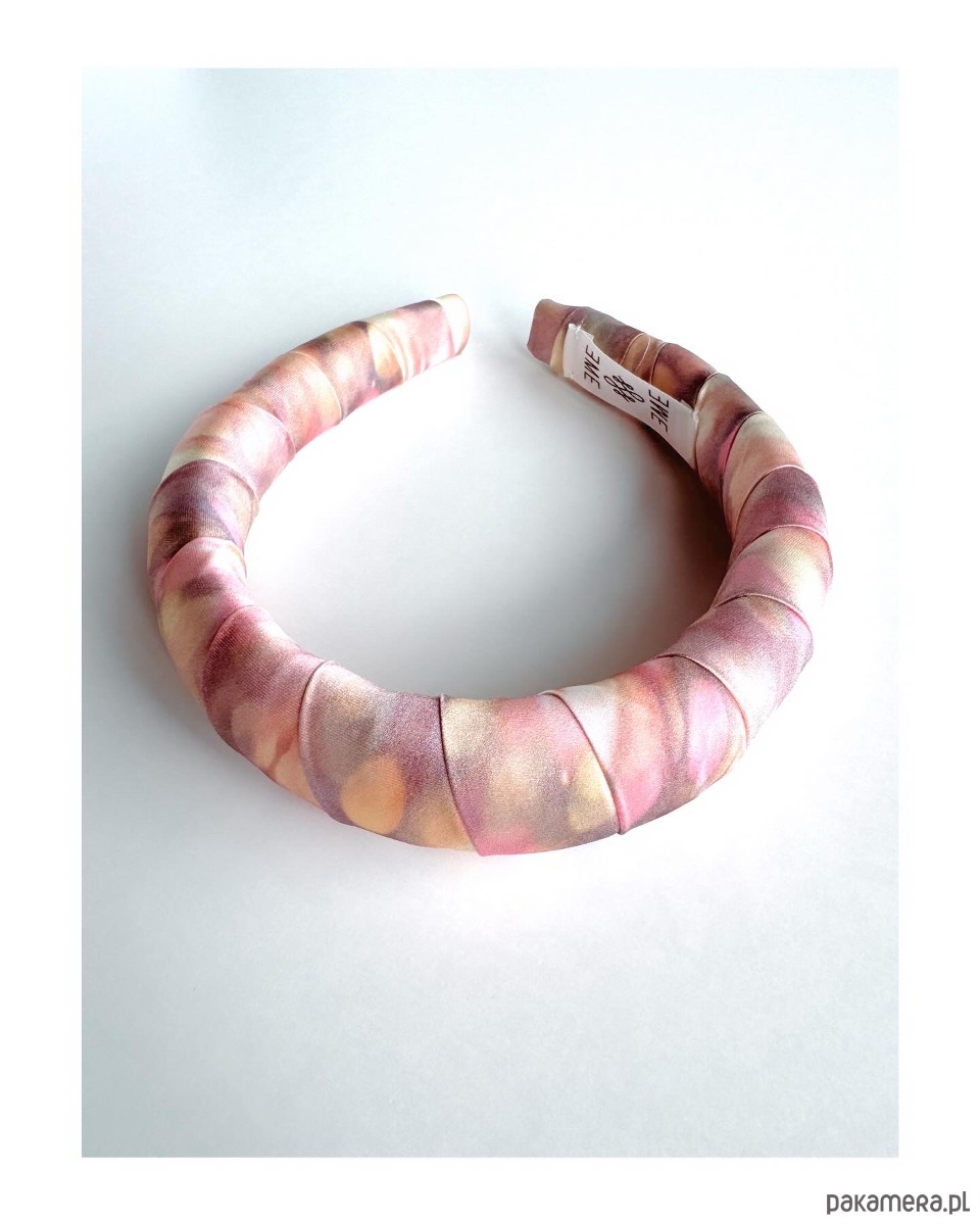 Opaska ręcznie wykonana w naszym atelier w Warszawie. Materiał wierzchni 100% Jedwab naturalny. Miękka opaska nie uciskająca skroni. Długość 37cm , szerokość 3,5cm , wysokość paddingu (miękkiego wypełnienia) ok. 2cm.