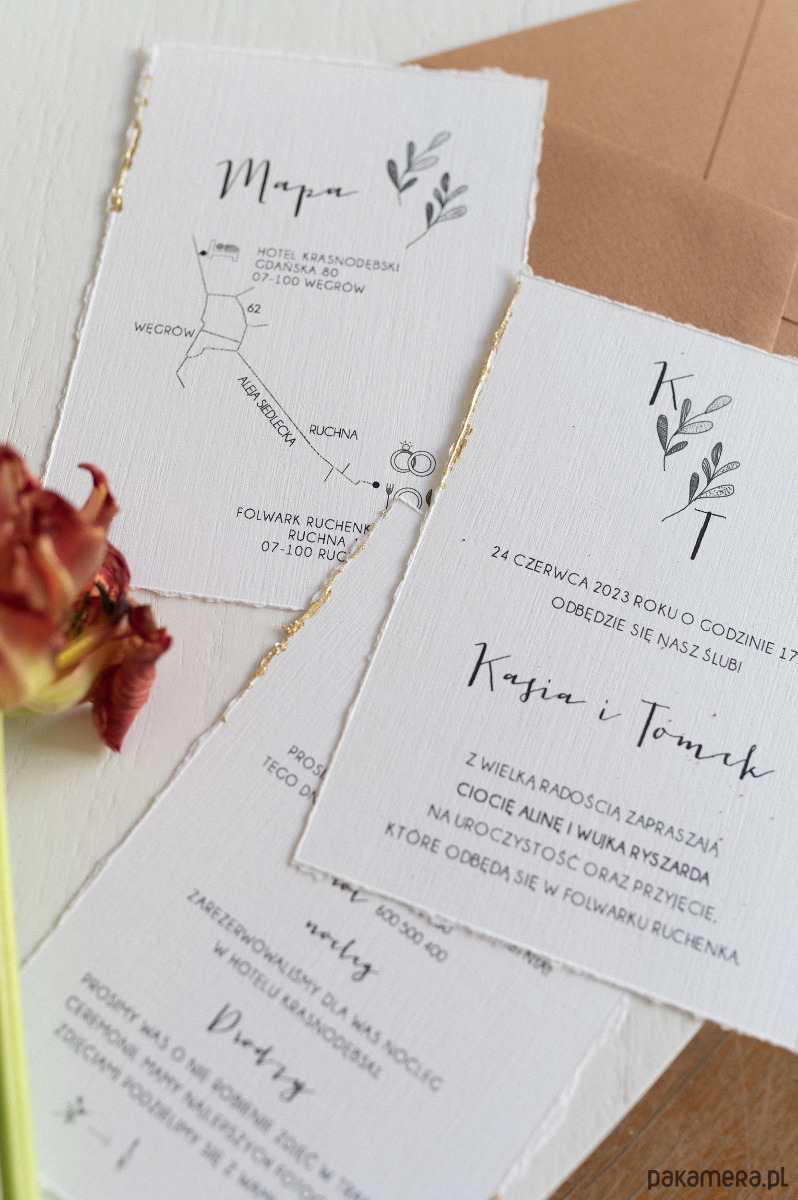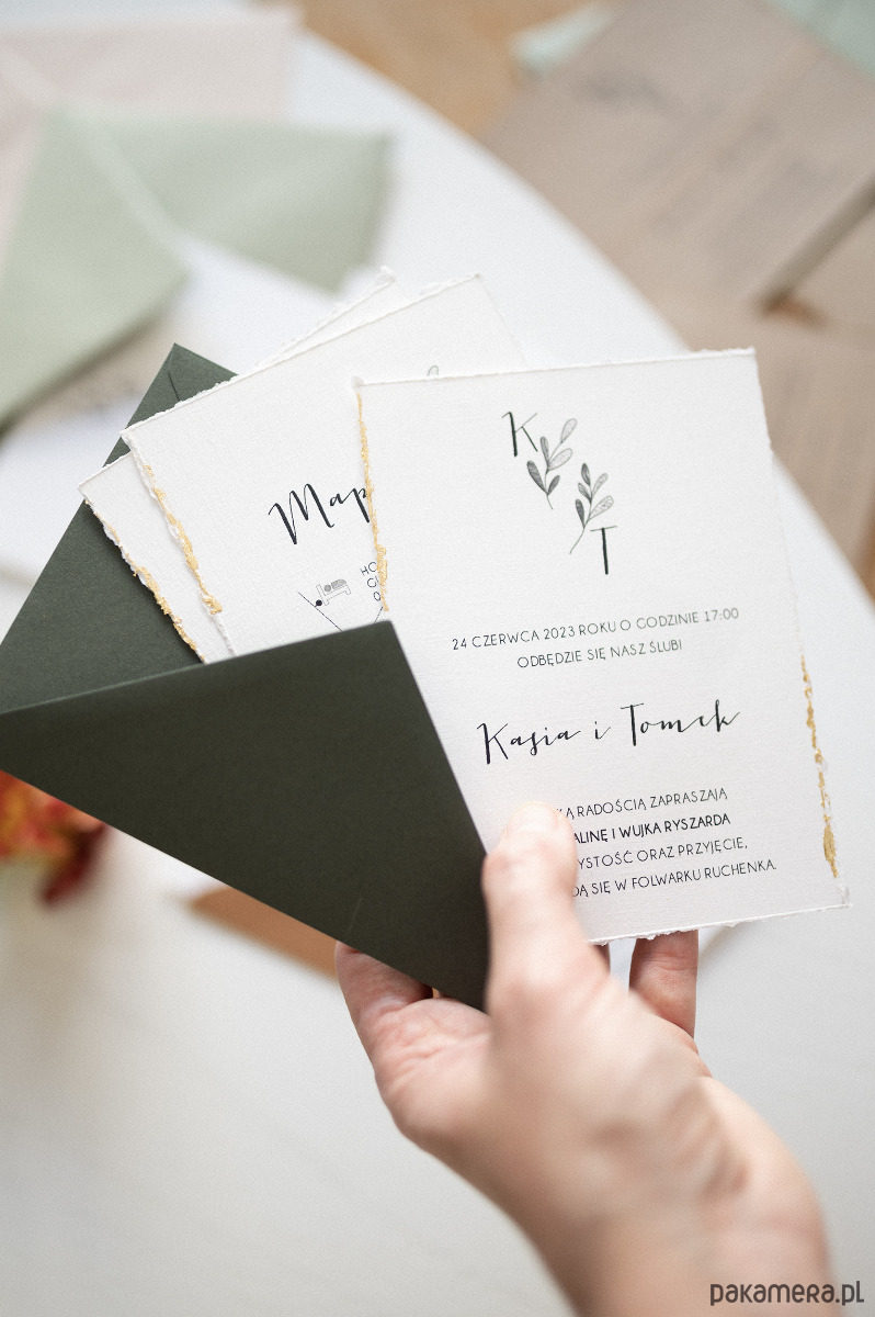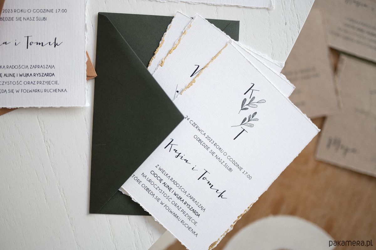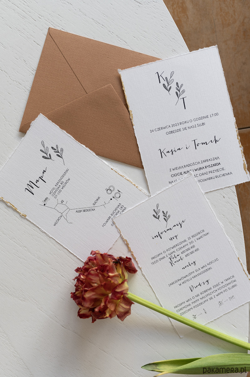 seria minimalistycznej papeterii wykonanej z ręcznie rwanego papieru ze złoceniem na brzegach