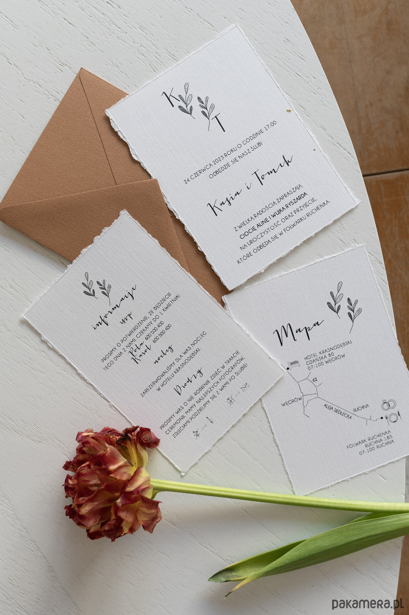 seria minimalistycznej papeterii wykonanej z ręcznie rwanego papieru