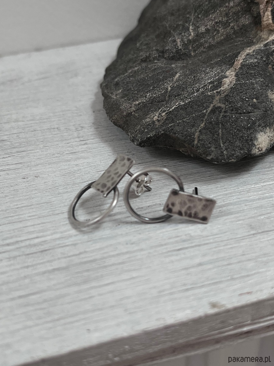 Niewielkie kolczyki sztyfty wykonane od podstaw ręcznie w srebrze oksydowanym pr 925.