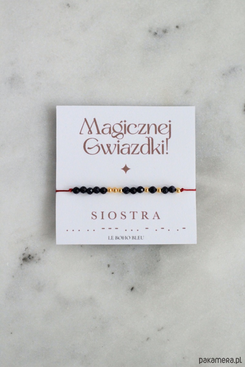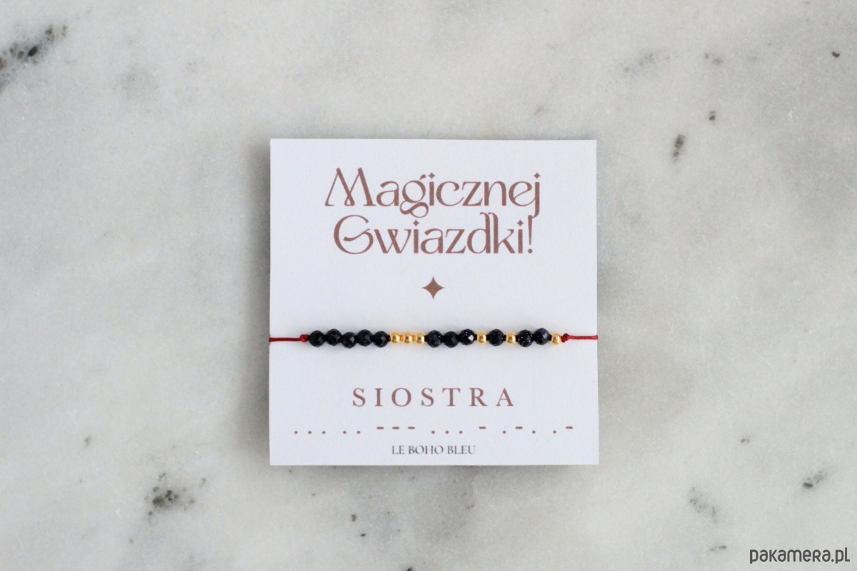 Delikatna bransoletka z ukrytą wiadomością zapisaną alfabetem Morse'a.