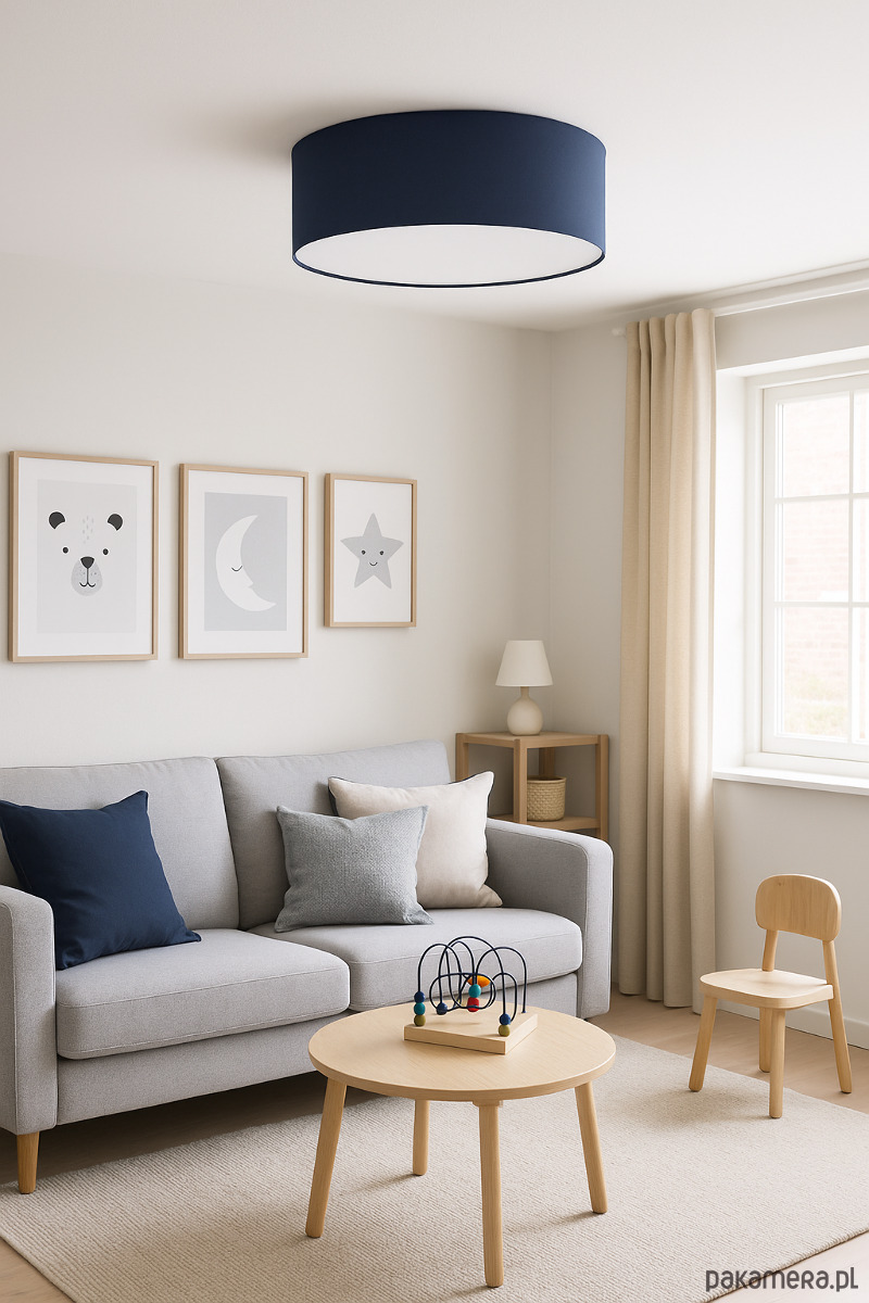 Materiał: stelaż - elementy metalowe, abażur - holenderska tkanina tekstylna podklejona na folii PVC