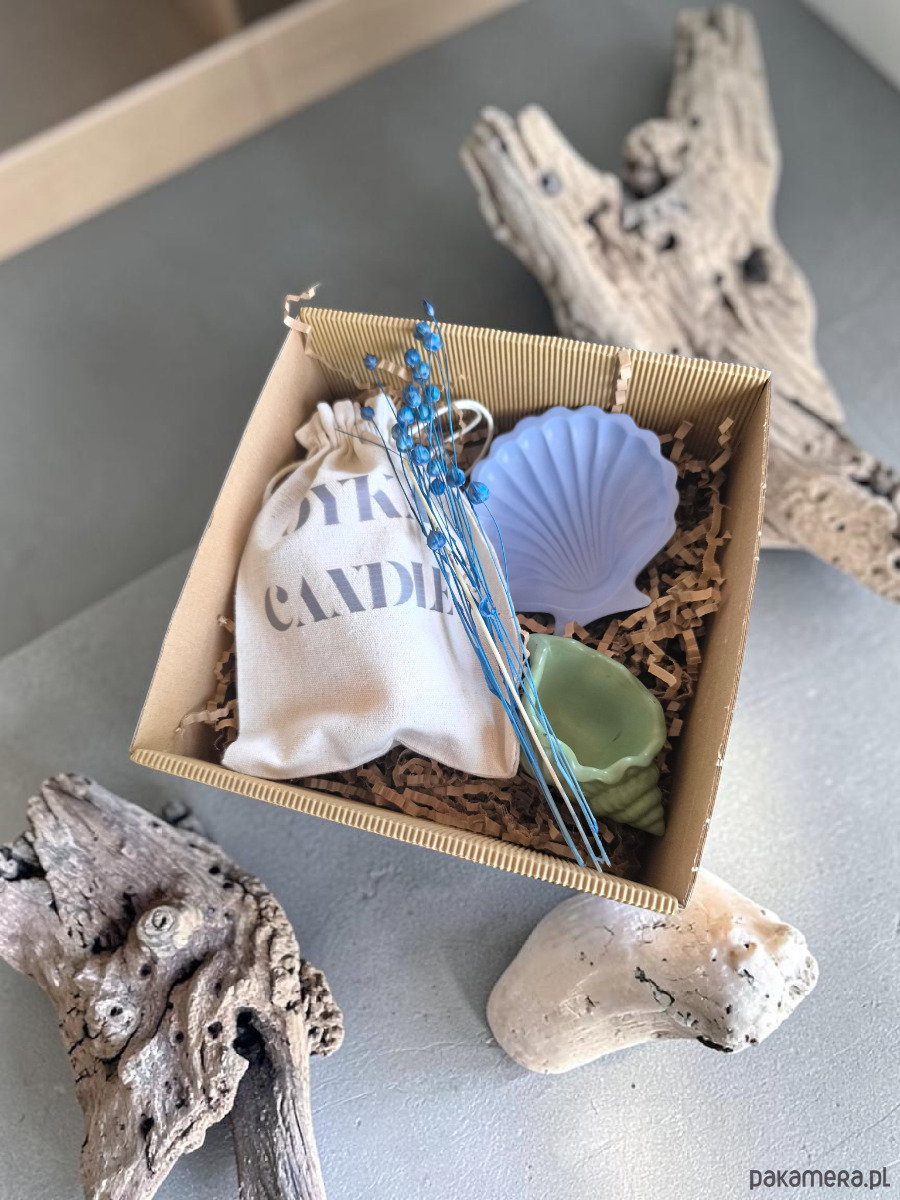Zestaw prezentowy świeca sojowa + naczynia na biżuterię – styl morski