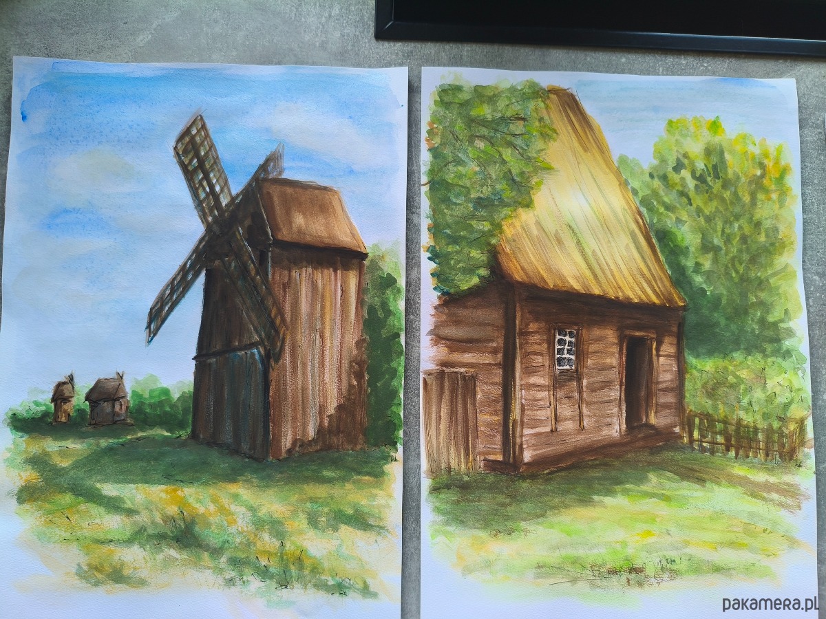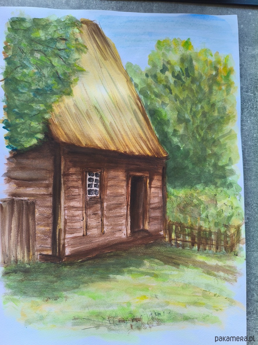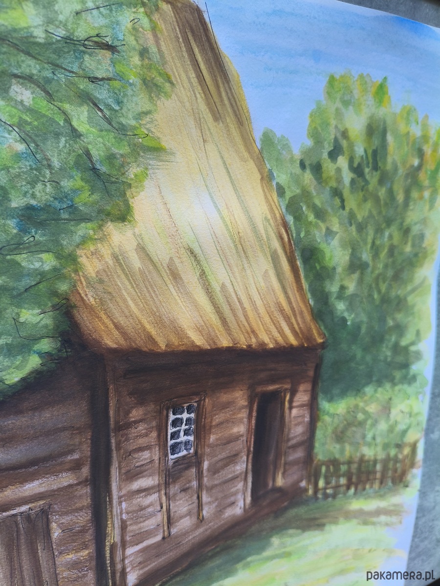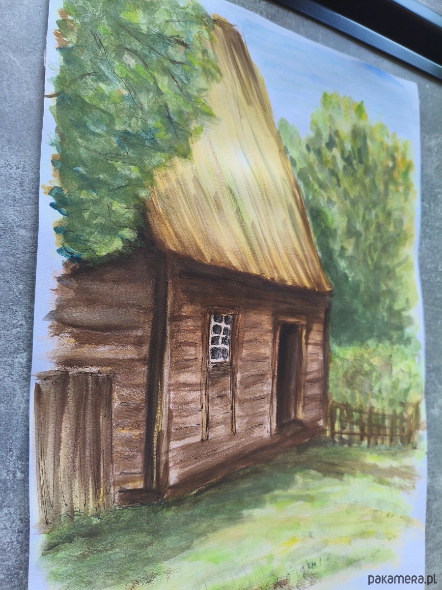 Przedstawiam obraz "Skansen Wsi Wielkopolskiej" – oryginalną akwarelę, namalowaną z głębokiej pasji do polskiej architektury drewnianej i tradycji. Ta wyjątkowa praca powstała w ramach prestiżowego konkursu "Architektura Drewniana w Akwareli", organizowanego przez Uniwersytet Przyrodniczy w Poznaniu, co jest gwarancją jej artystycznej wartości i profesjonalnego wykonania.