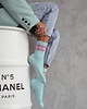 Skarpetki MON CHERI w kolorze baby blue z różowym napisem