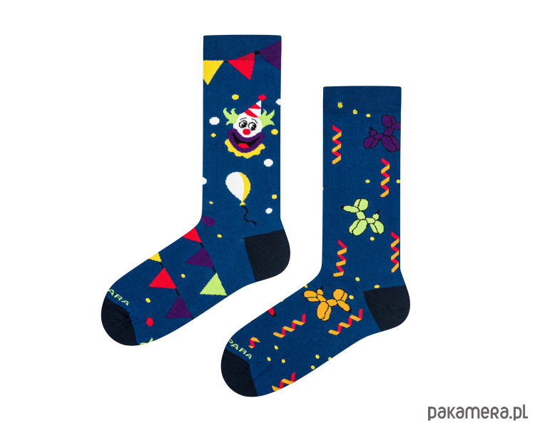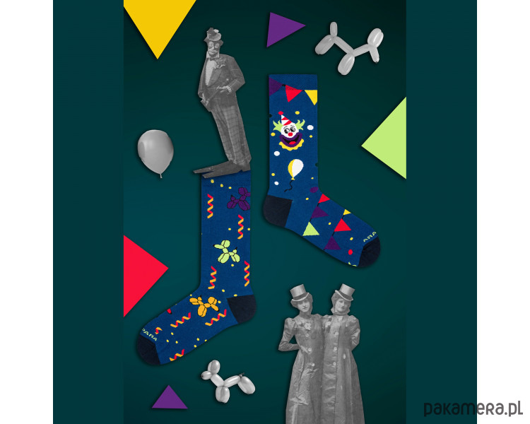Obraz jak z przyjęć dla dzieci z amerykańskich filmów. Clown, pełno dmuchanych balonów i granatowe, nocne niebo. To kwindesencja dobrej zabawy i jakże niezpomnianych wspomnień, do których wracamy z ogromnym sentymentem. Po co przeglądać zdjęcia z przeszłości skoro wystarczy założyć skarpety od TakaPara!