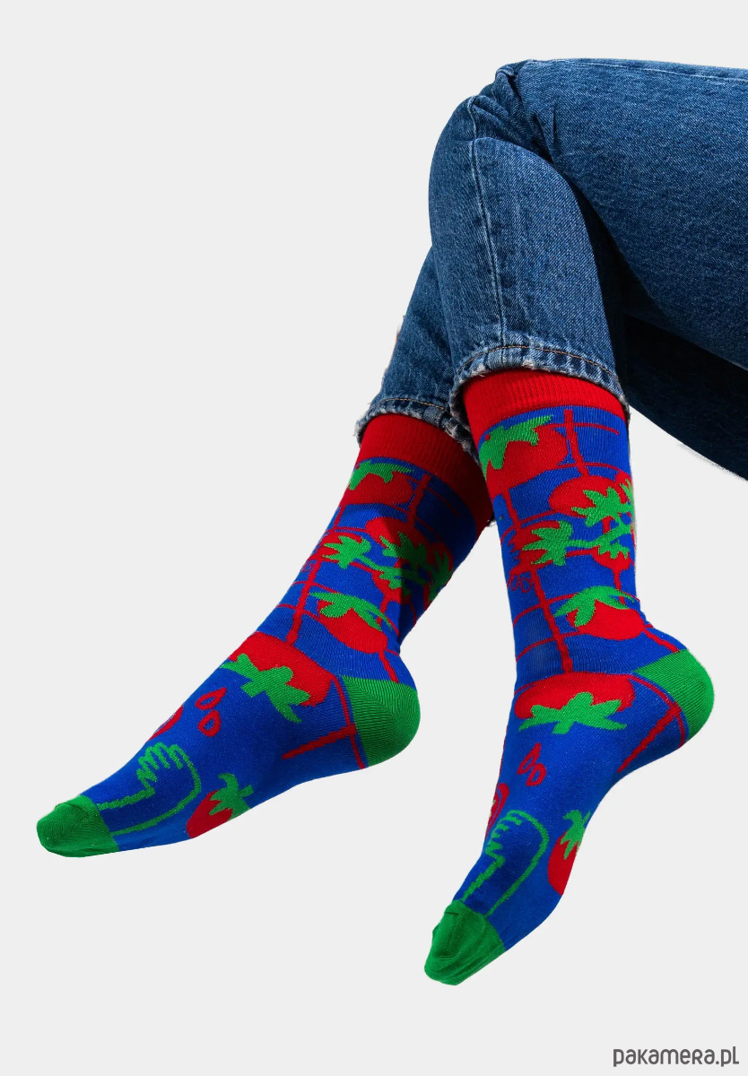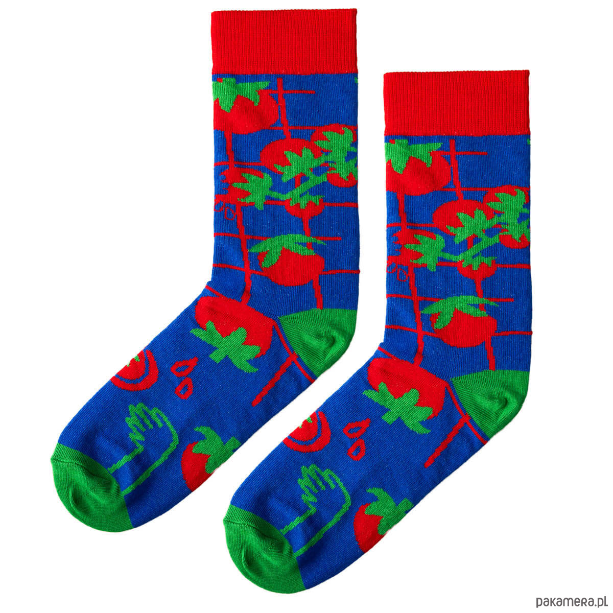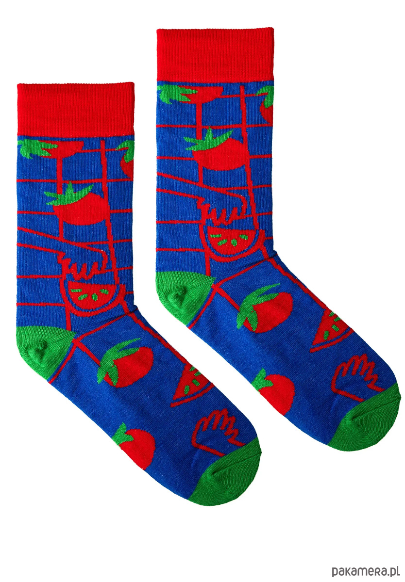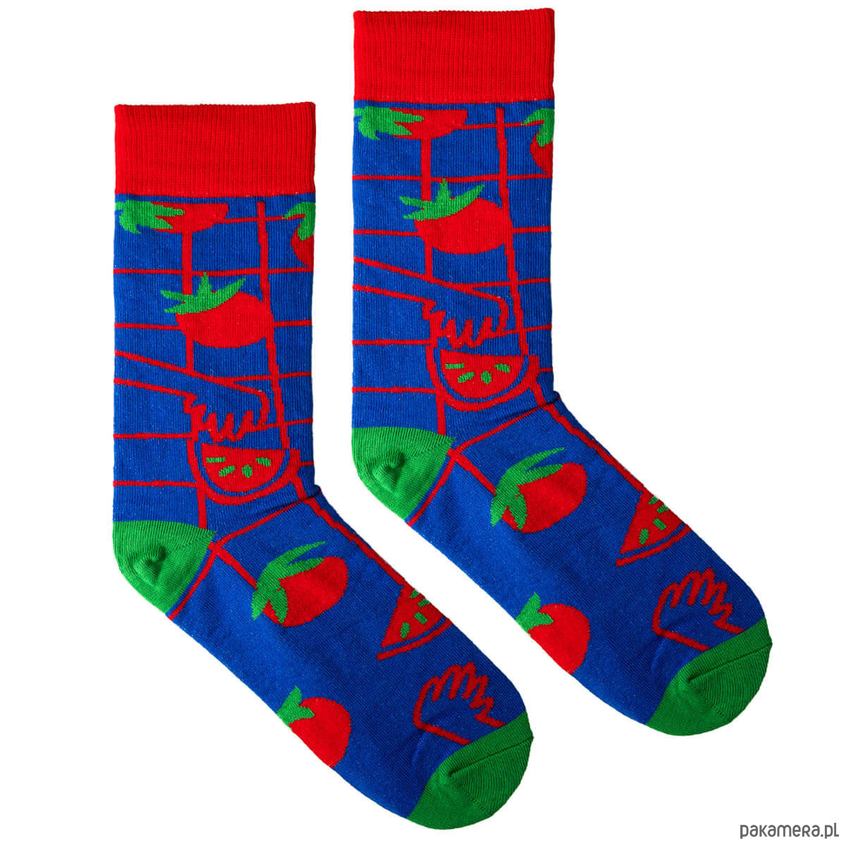 Skarpetki pomidory niebieskie skarpetki we wzory Kabak