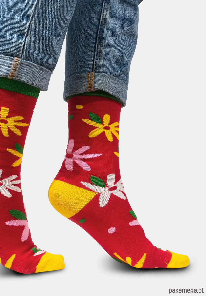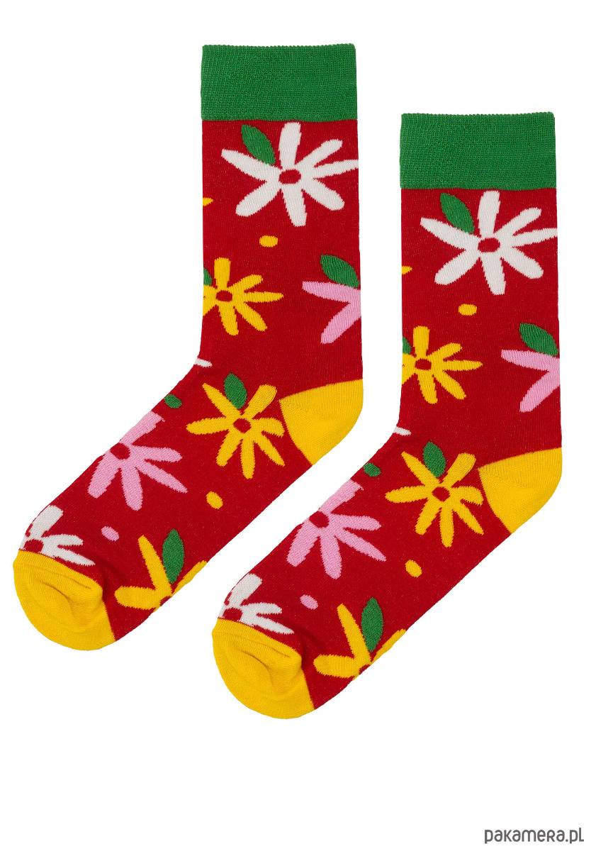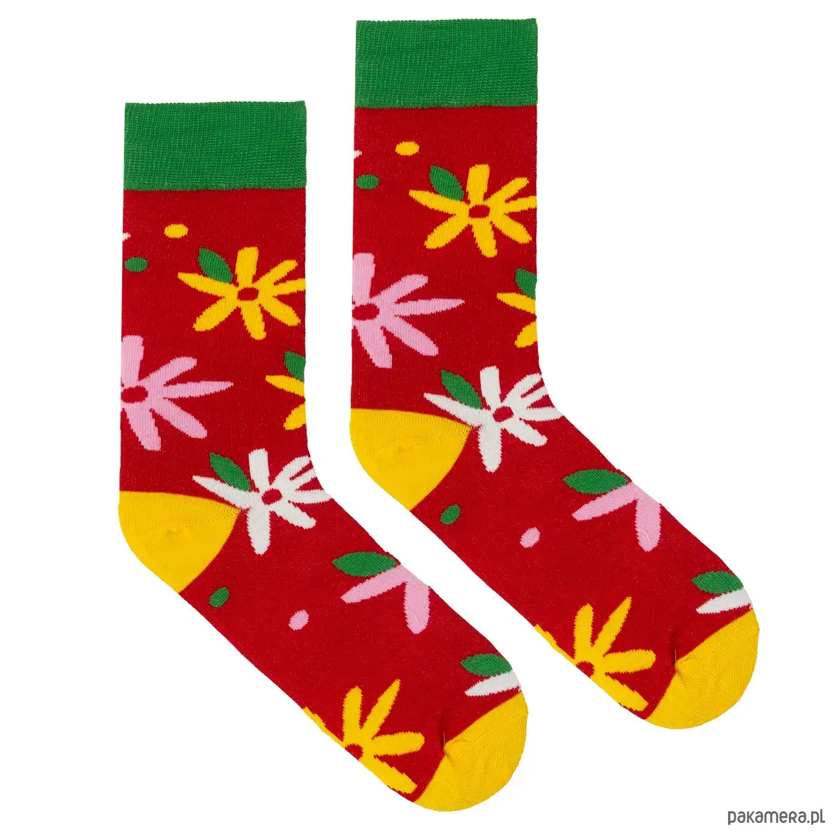 Skarpetki stokrotki kwiatki czerwone skarpetki we wzory Kabak