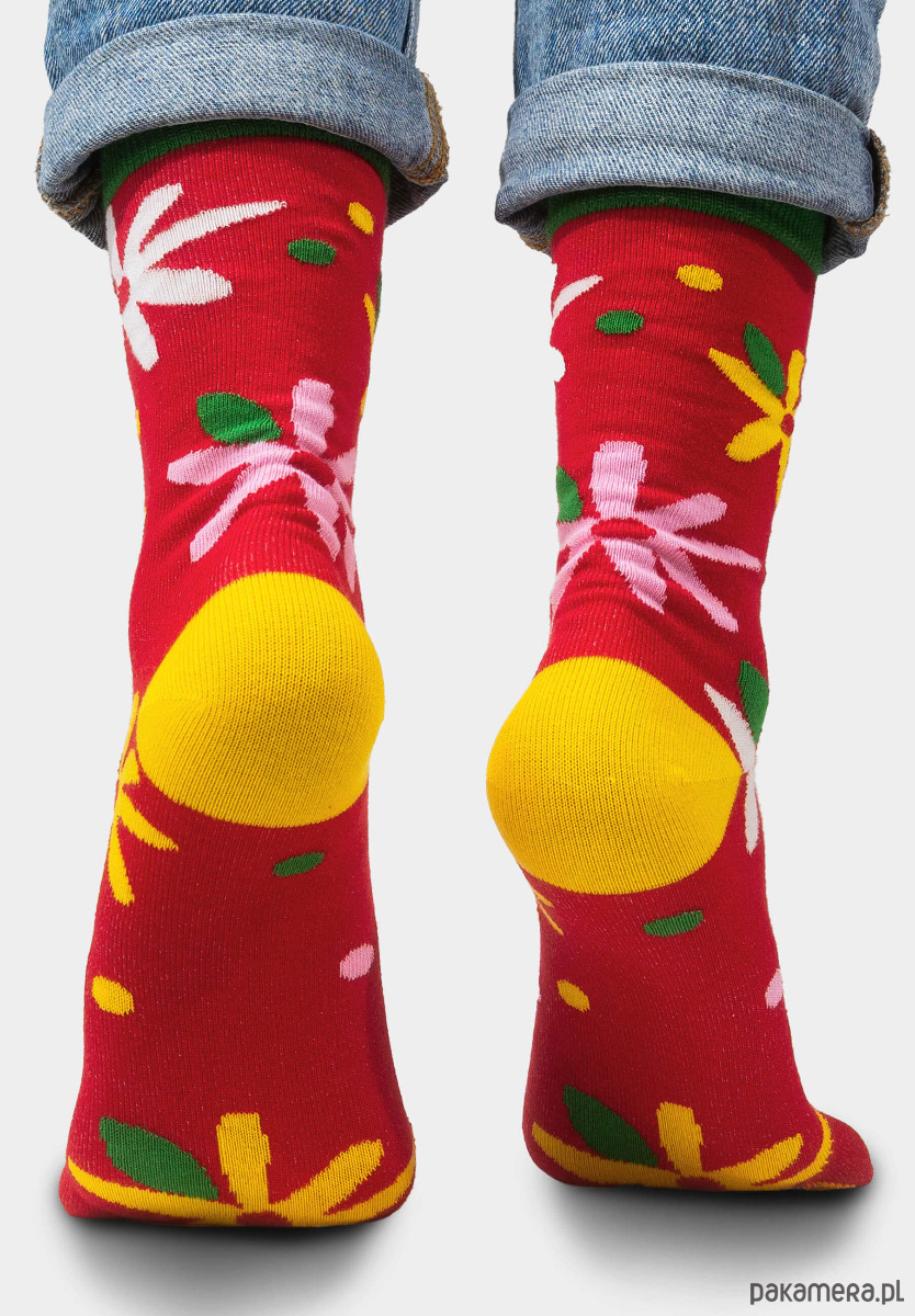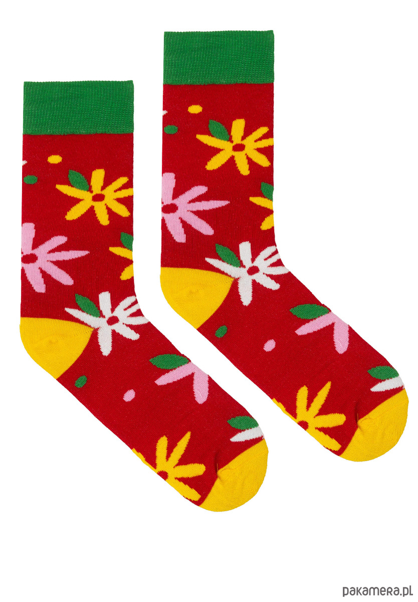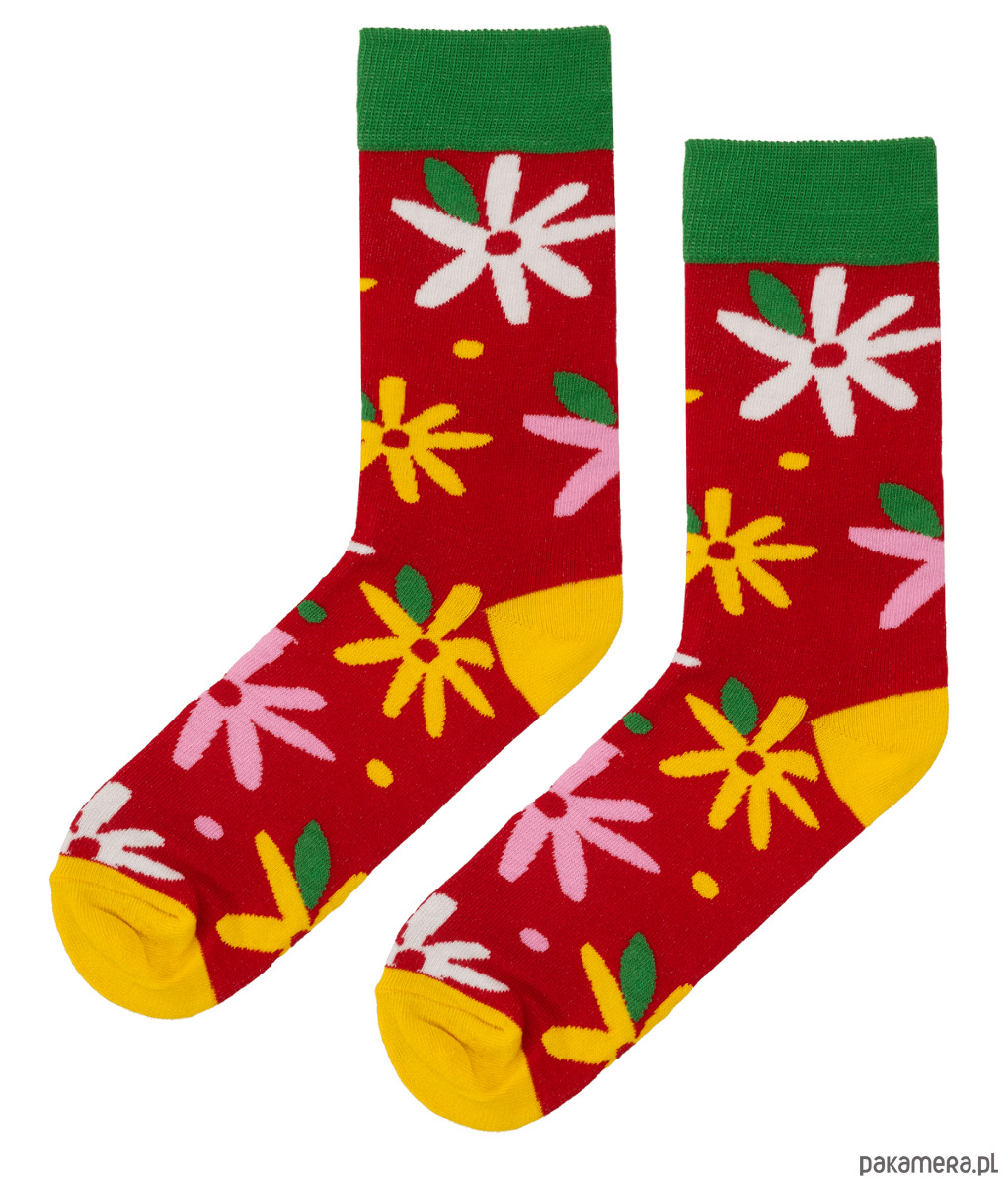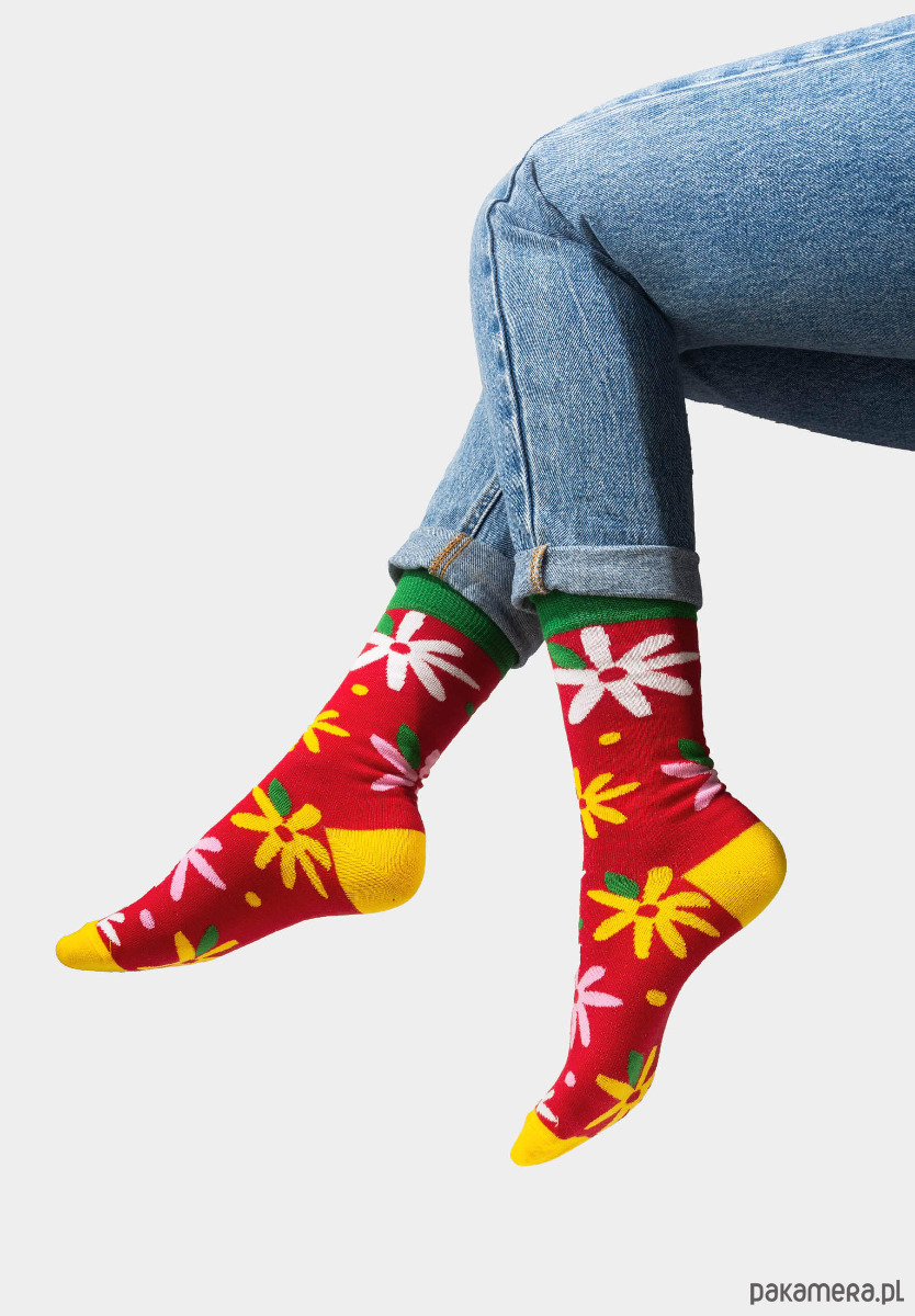Skarpetki stokrotki kwiatki czerwone skarpetki we wzory Kabak