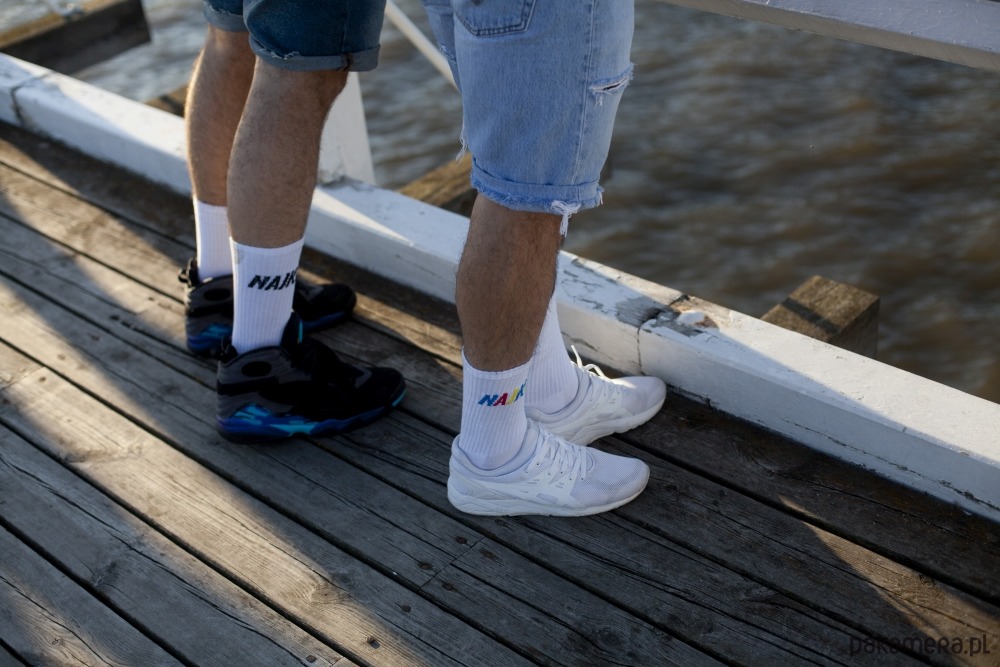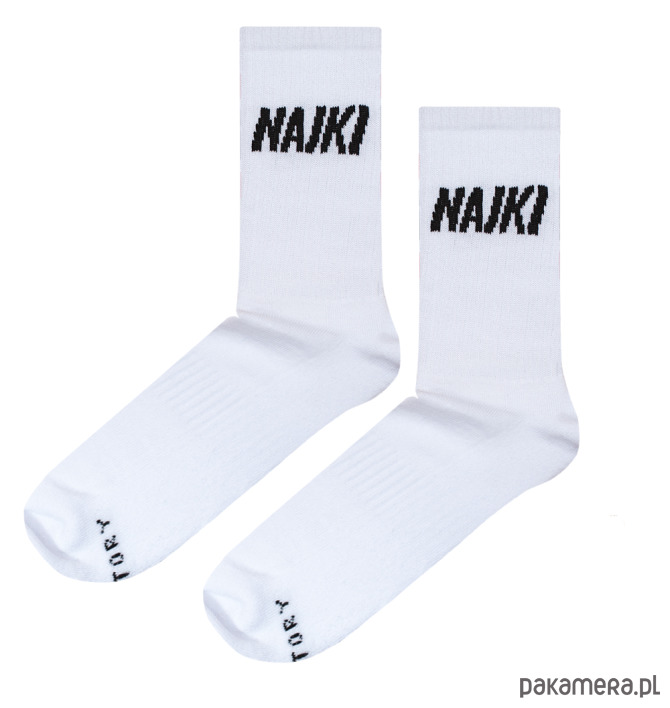 Sportowe, frotowe skarpetki z czarnym napisem NAJKI :)