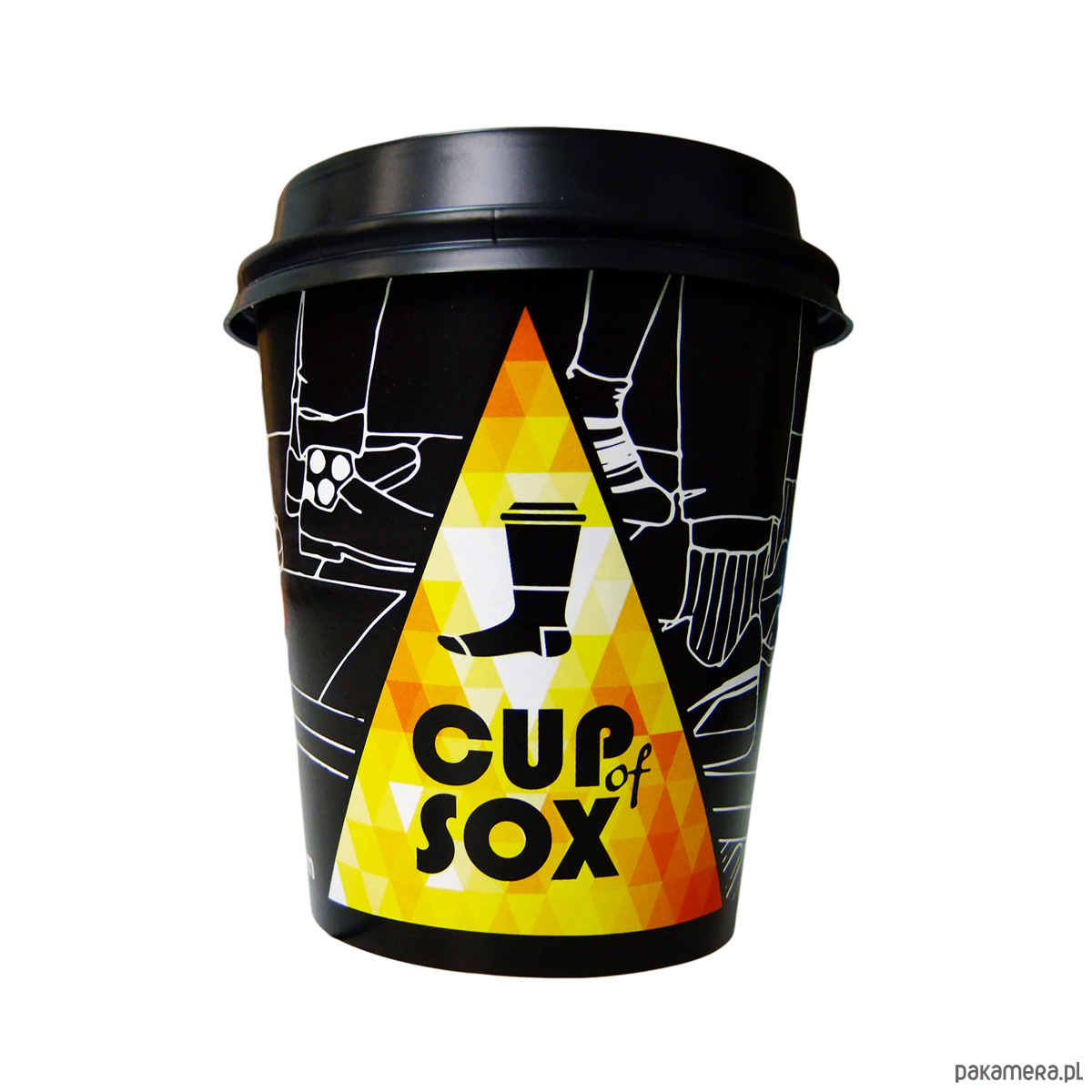 Komplet Cup of sox składa się z jednej pary skarpet zapakowanych w wygodny, zamykany kubek.