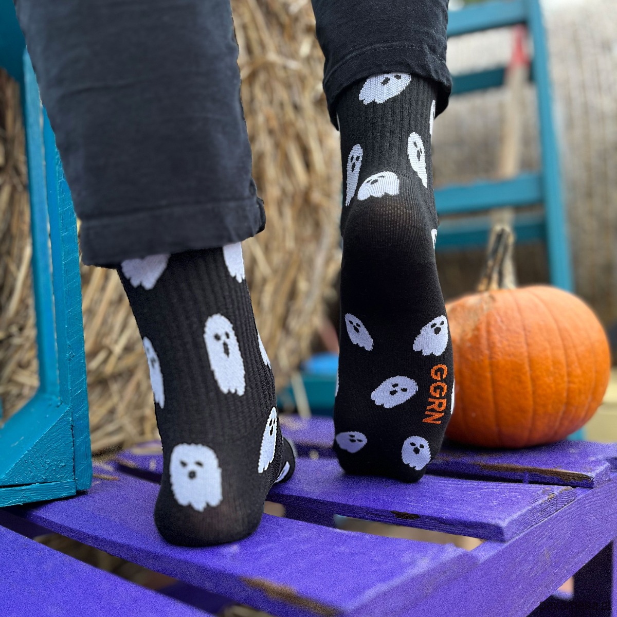 Święto Halloween zagościło w Polsce na dobre. Odpowiedzią na ten trend są nasze skarpetki z duchami, które idealnie wpasują się w październikowy klimat. Czarne skarpetki damskie w duchy, a na całej powierzchni straszące duchy. Skarpetki na Halloween to obowiązkowy element garderoby każdego fana duchów, wampirów oraz wiedźm. Dodatkowo zastosowany ściągacz zapobiega zsuwaniu się skarpetek z nóg i doskonale utrzymuje je na swoim miejscu. Podwiń nogawki i strasz na odległość. Najlepsze śmieszne skarpetki damskie prosto od Candy Sox! Sprawdź także kolekcję skarpetki na jesień i dowiedz się co się teraz nosi!