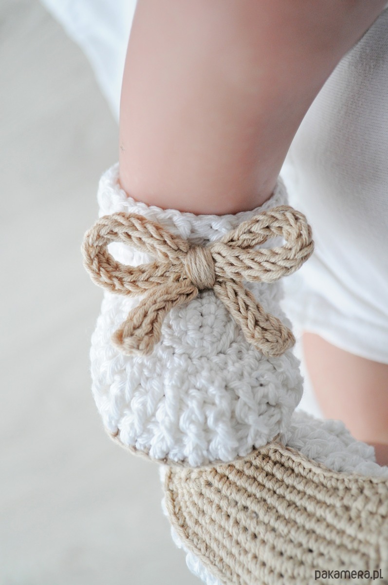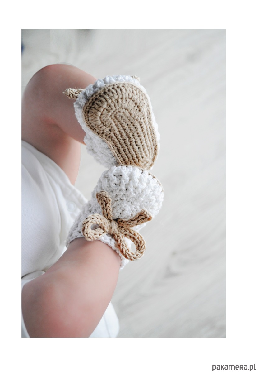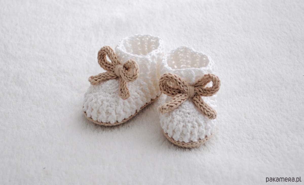 Skarpetki na miękkiej podeszwie zostały wykonane ręcznie z bawełny. Są lekkie i miękkie w dotyku.
