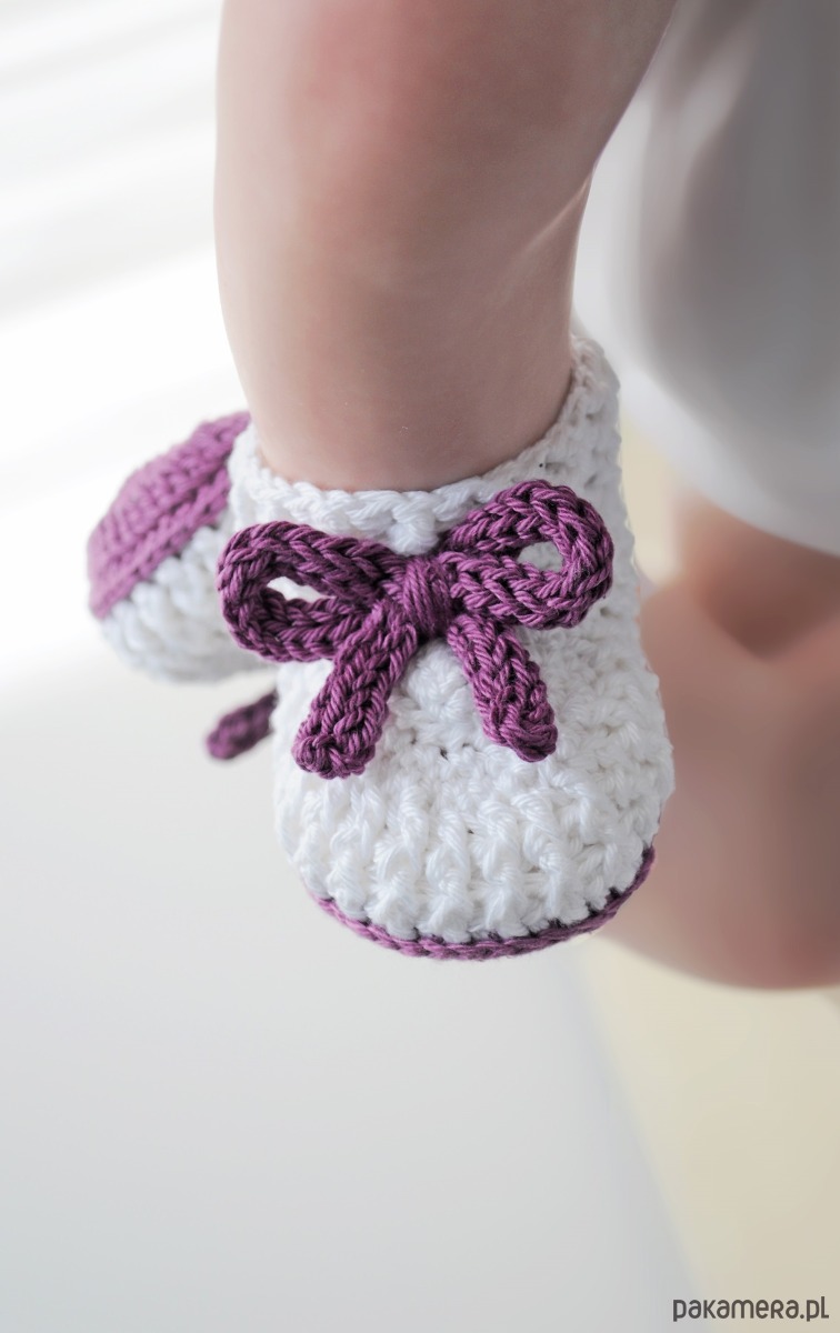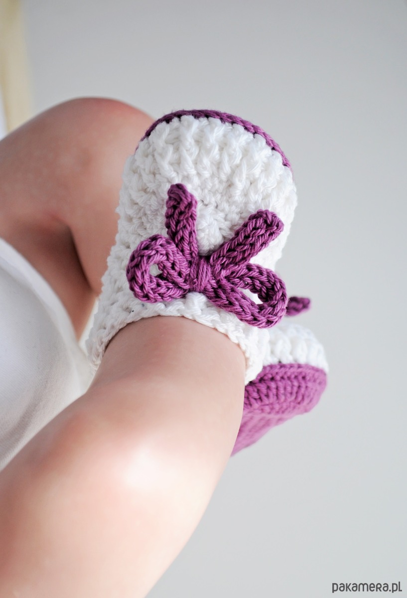 Skarpetki na miękkiej podeszwie zostały wykonane ręcznie z bawełny. Są lekkie i miękkie w dotyku.