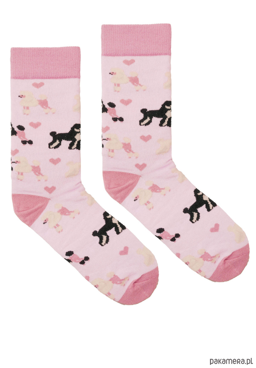 Skarpetki zakochane psy pudle z serduszkami różowe skarpetki we wzory Kabak