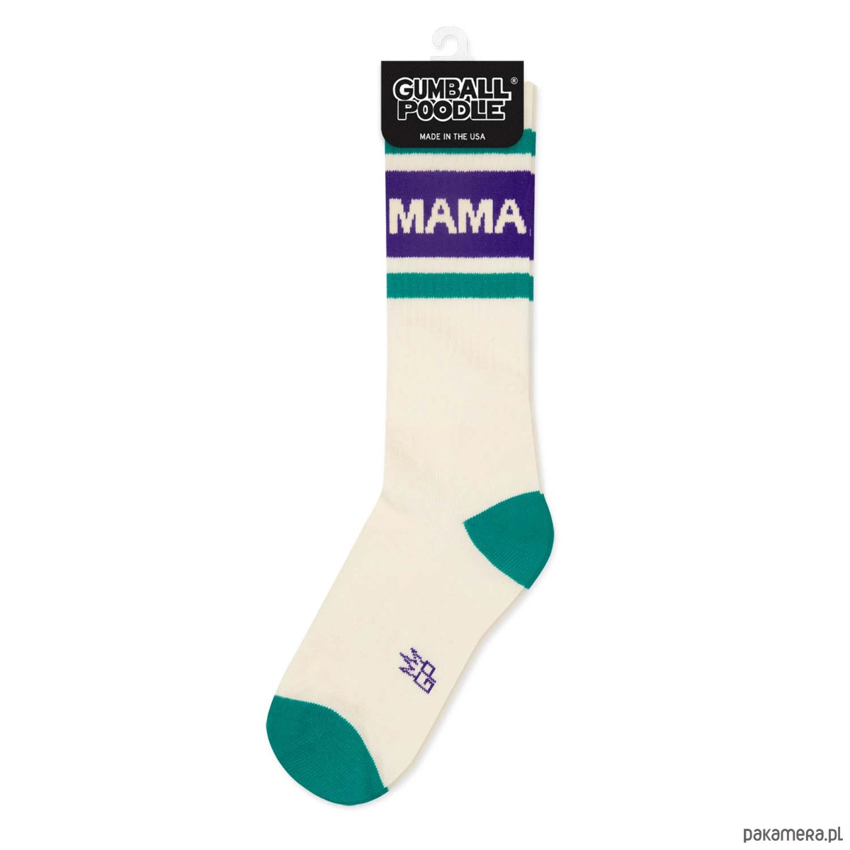 Najważniejszy tytuł, najlepszy vibe. Skarpety MAMA w fioletowo-morskim wydaniu. Wyprodukowane etycznie w USA.