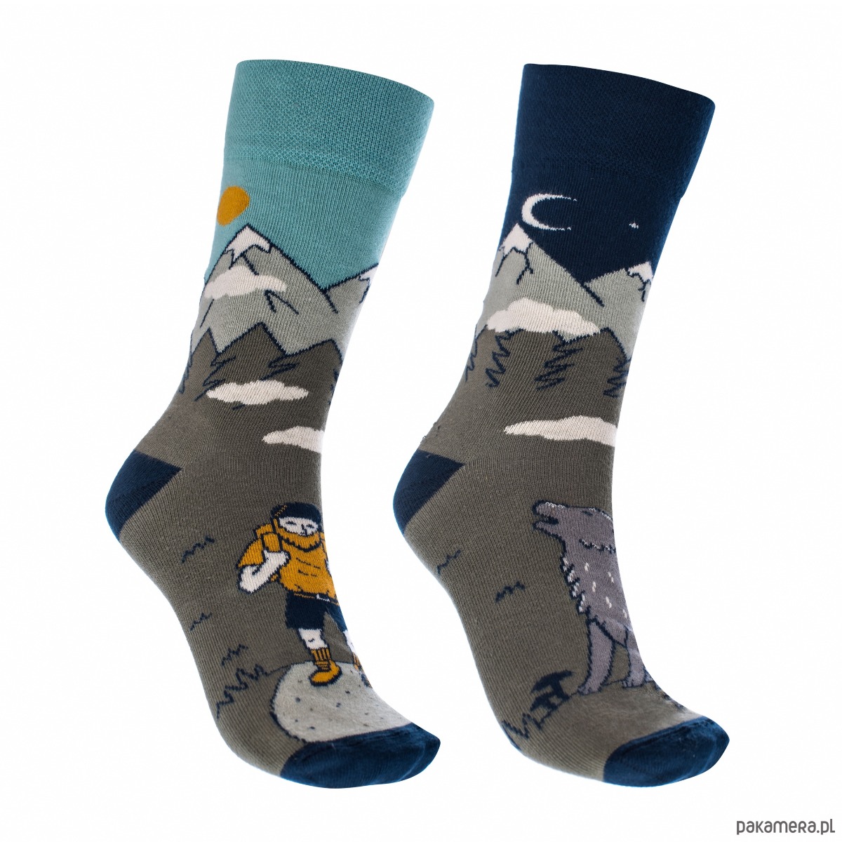 Skarpety WŁÓCZYKIJ to mieszanka motywów górskich, na każdą porę dnia i okoliczności przyrody. Zestaw zawiera 2 pary!