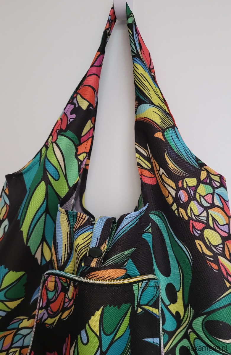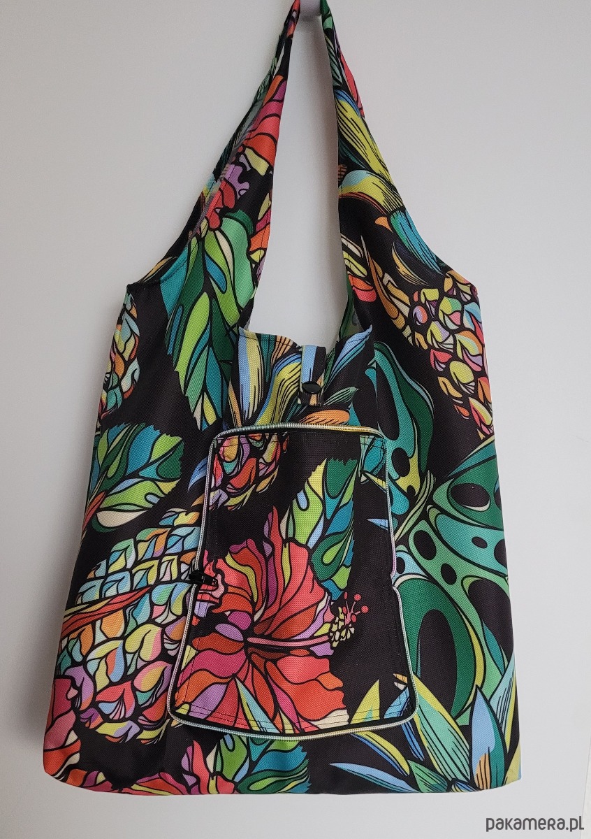 Torba jest pojemna i praktyczna, po złożeniu ma wymiary: 11cmx19cm, idealna więc dla osoby,która lubi ład w torebce.