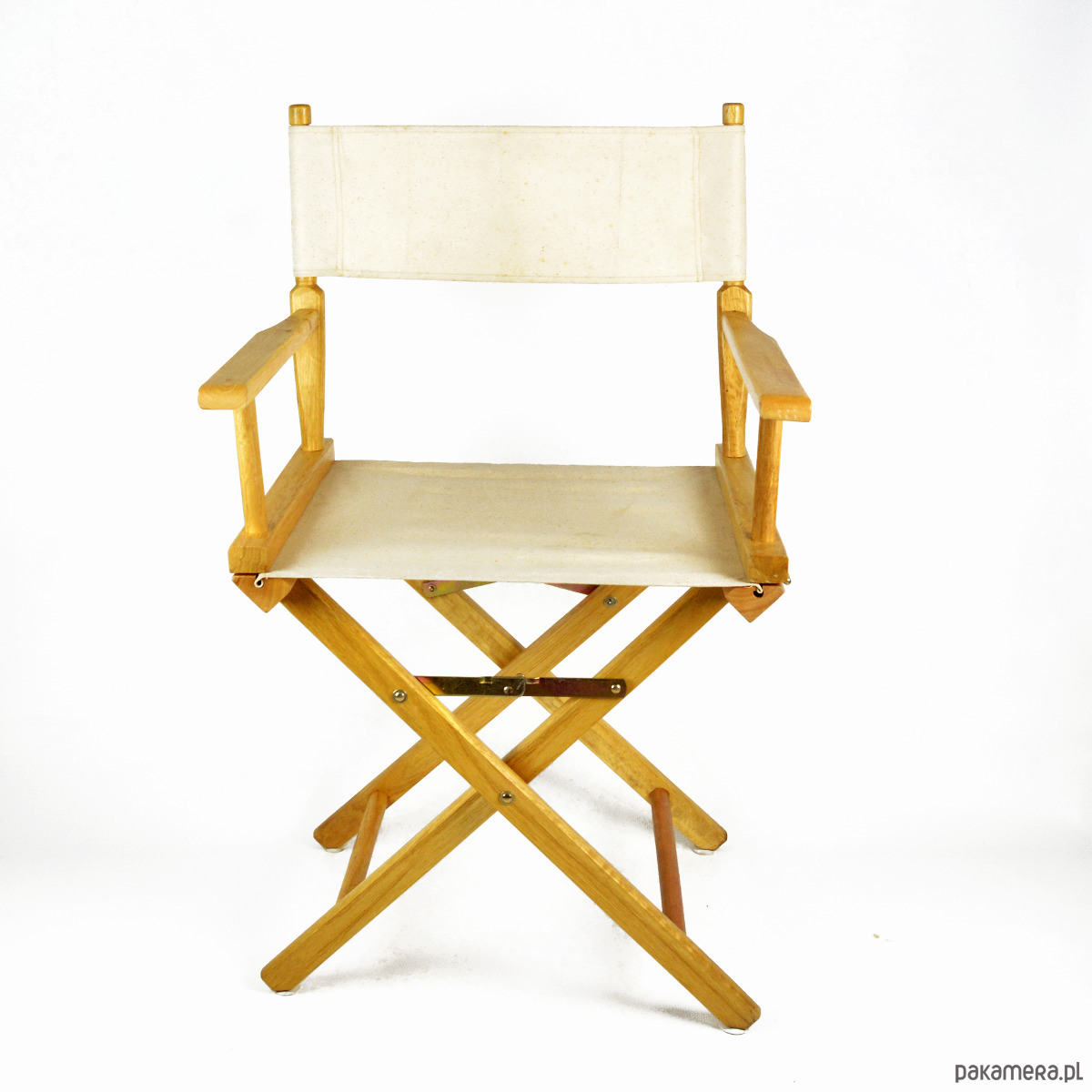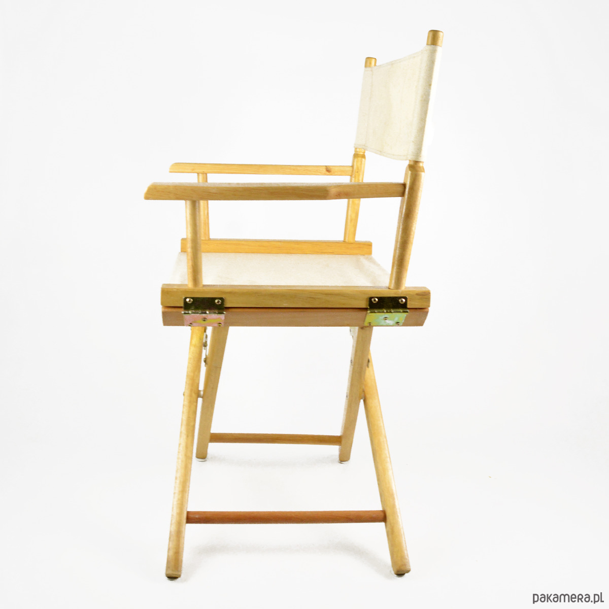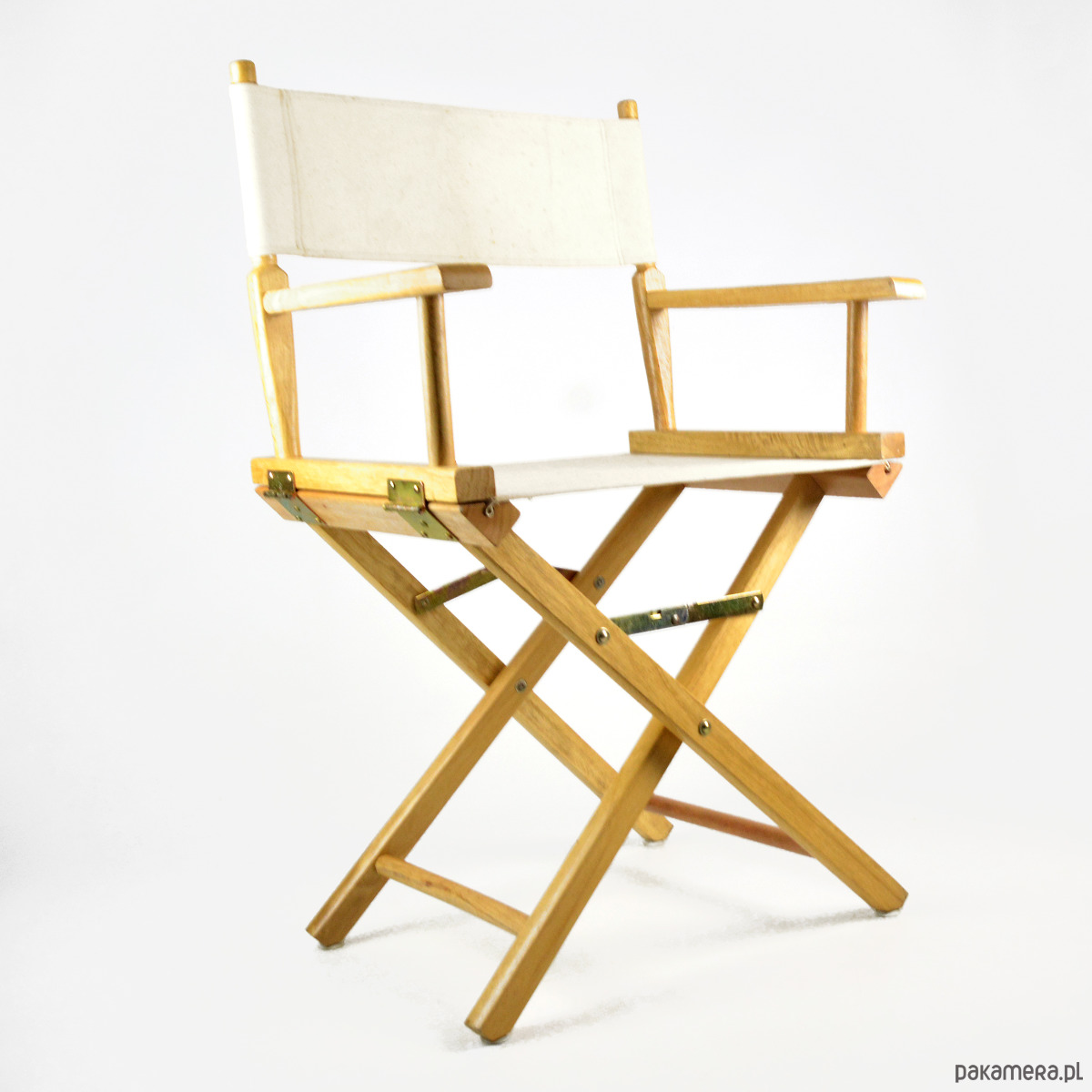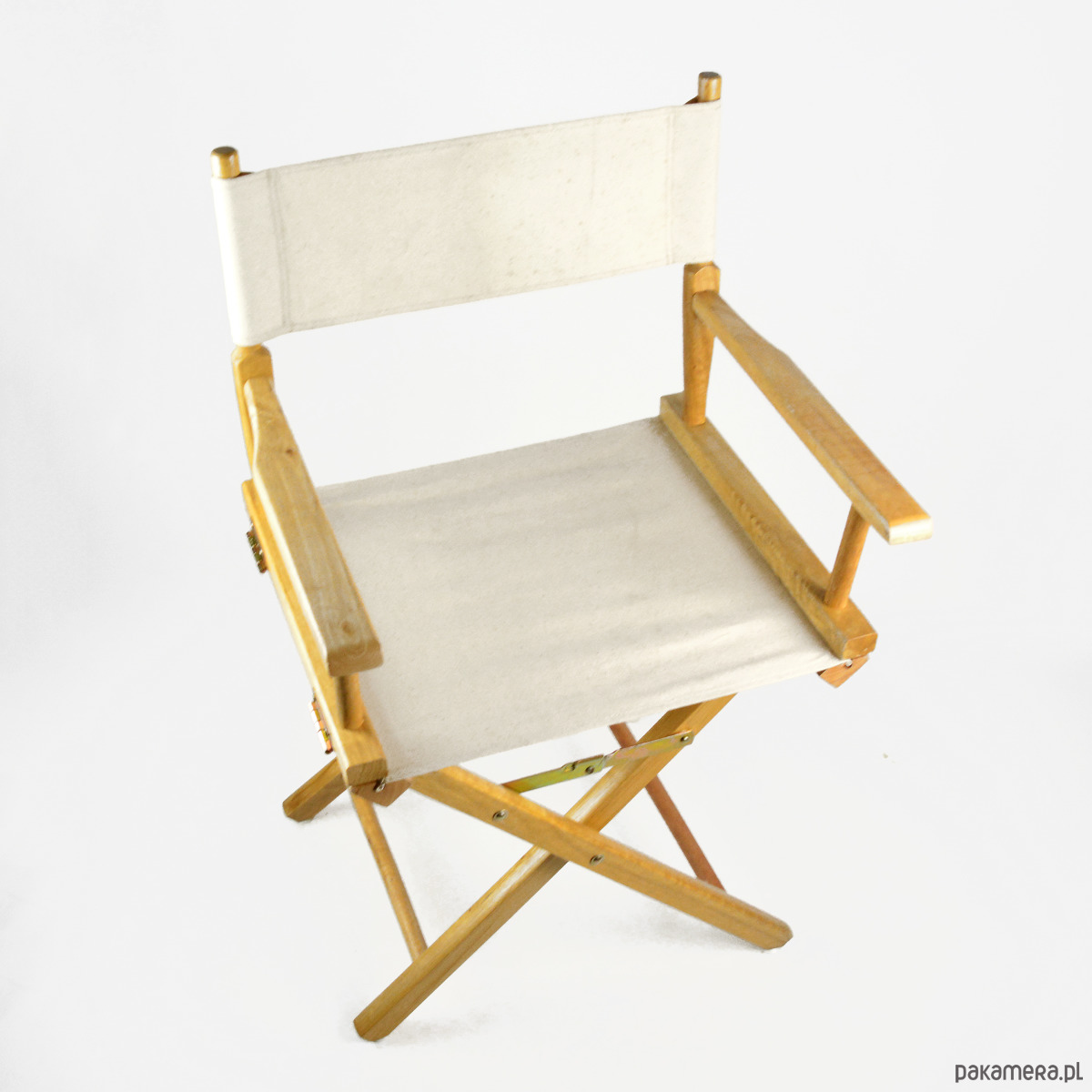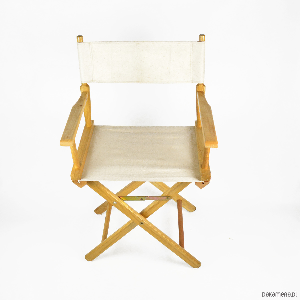 Krzesło reżyserskie składane, wyprodukowane w Niemczech na przełomie lat 70. i 80. Krzesło wykonane z masywu z drewna egzotycznego siedzisko i oparcie z płótna żeglarskiego beżowym. Mebel w stanie oryginalnym bardzo dobrym, stelaż na kilka obtarć użytkowych.