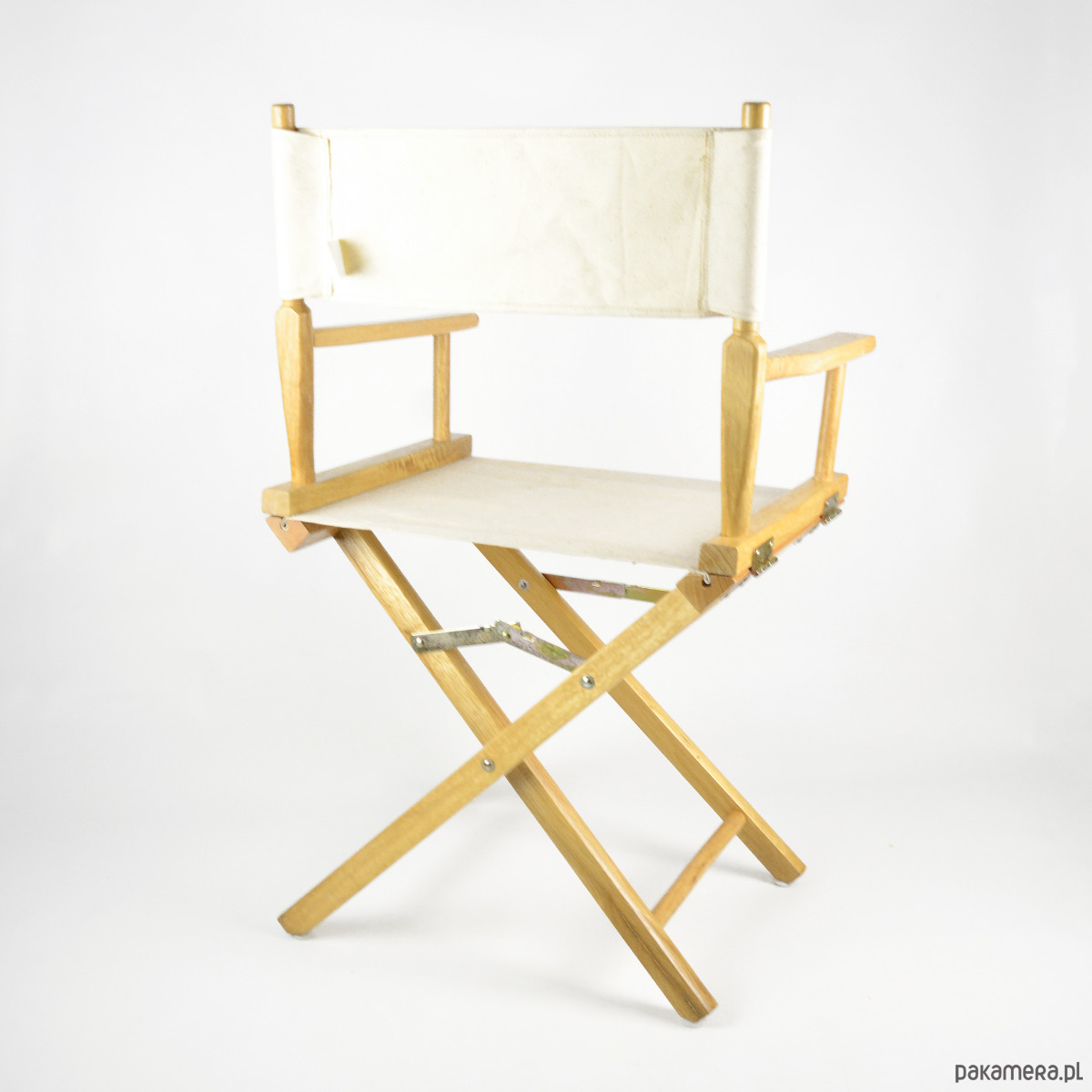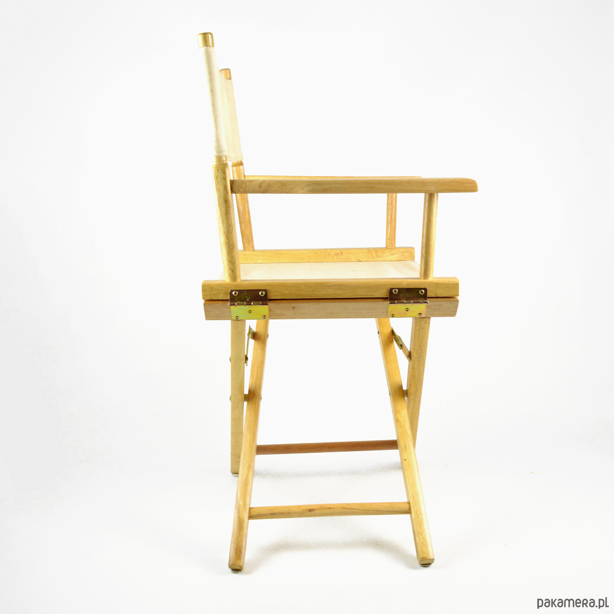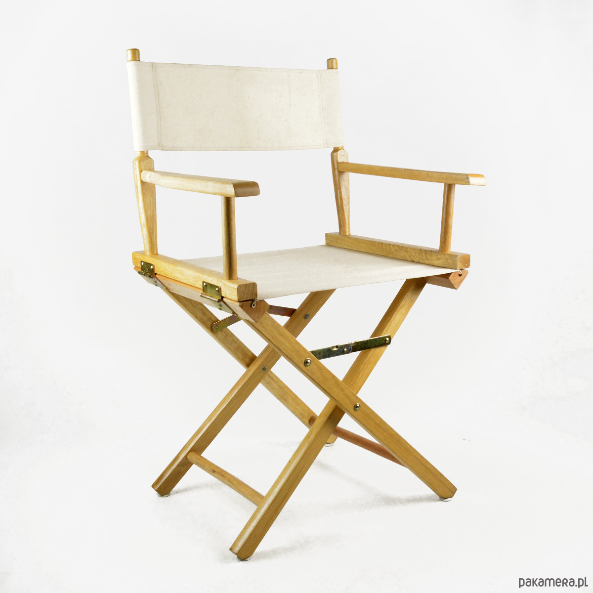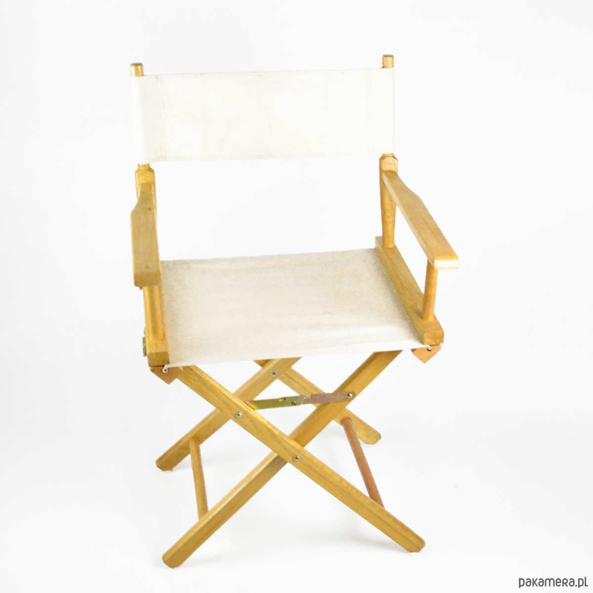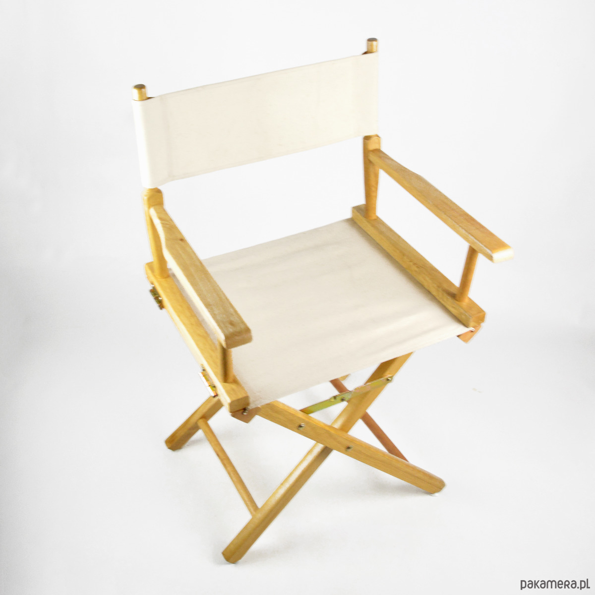 Krzesło reżyserskie składane, wyprodukowane w Niemczech na przełomie lat 70. i 80. Krzesło wykonane z masywu z drewna egzotycznego siedzisko i oparcie z płótna żeglarskiego beżowym. Mebel w stanie oryginalnym bardzo dobrym, stelaż na kilka obtarć użytkowych.