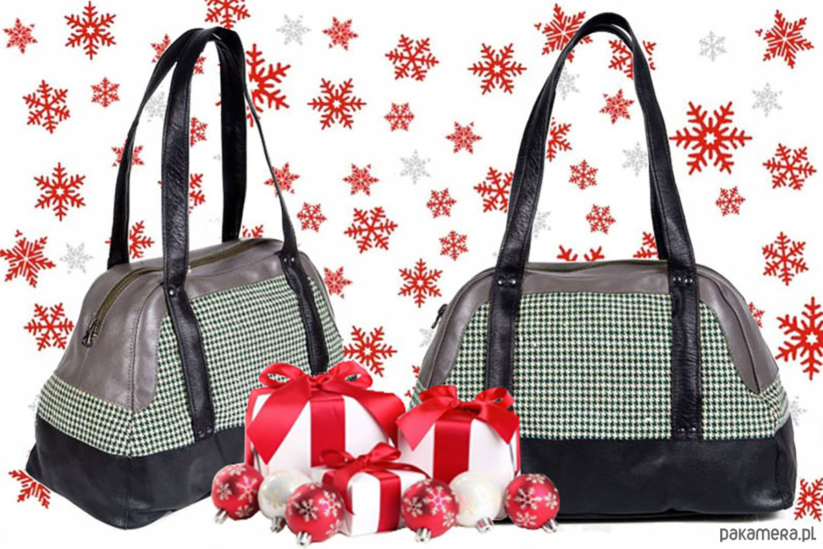 Skóra naturalna + wełna TOREBKA OLIWKA 100% handmade