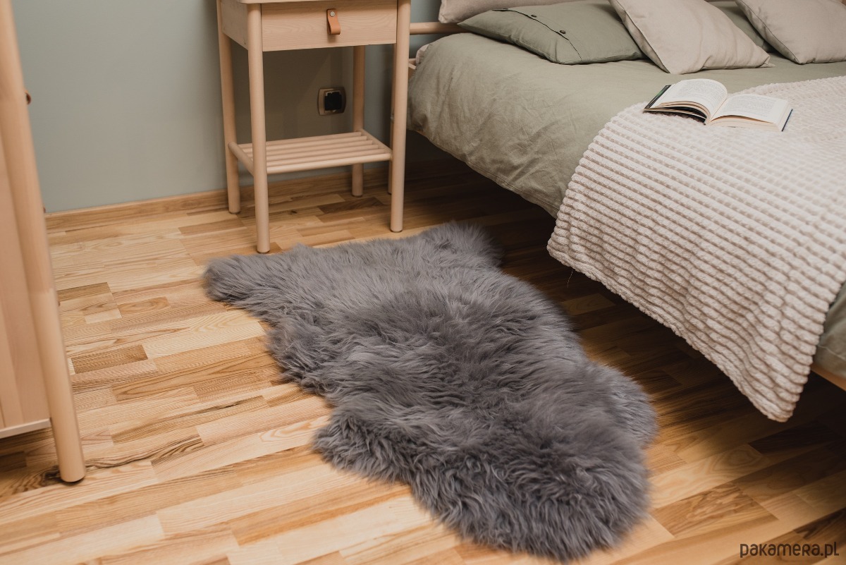 Skóra Owcza Naturalna Szara EKO Dywan Dywanik Skóra Szara