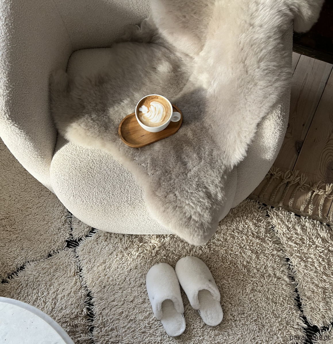 Skóra owcza może być używana jako dywanik, narzuta na fotel/łóżko czy mata do medytacji. Dzięki naturalnemu połyskowi i subtelnej fakturze, dodaje wnętrzu przytulności i charakteru.