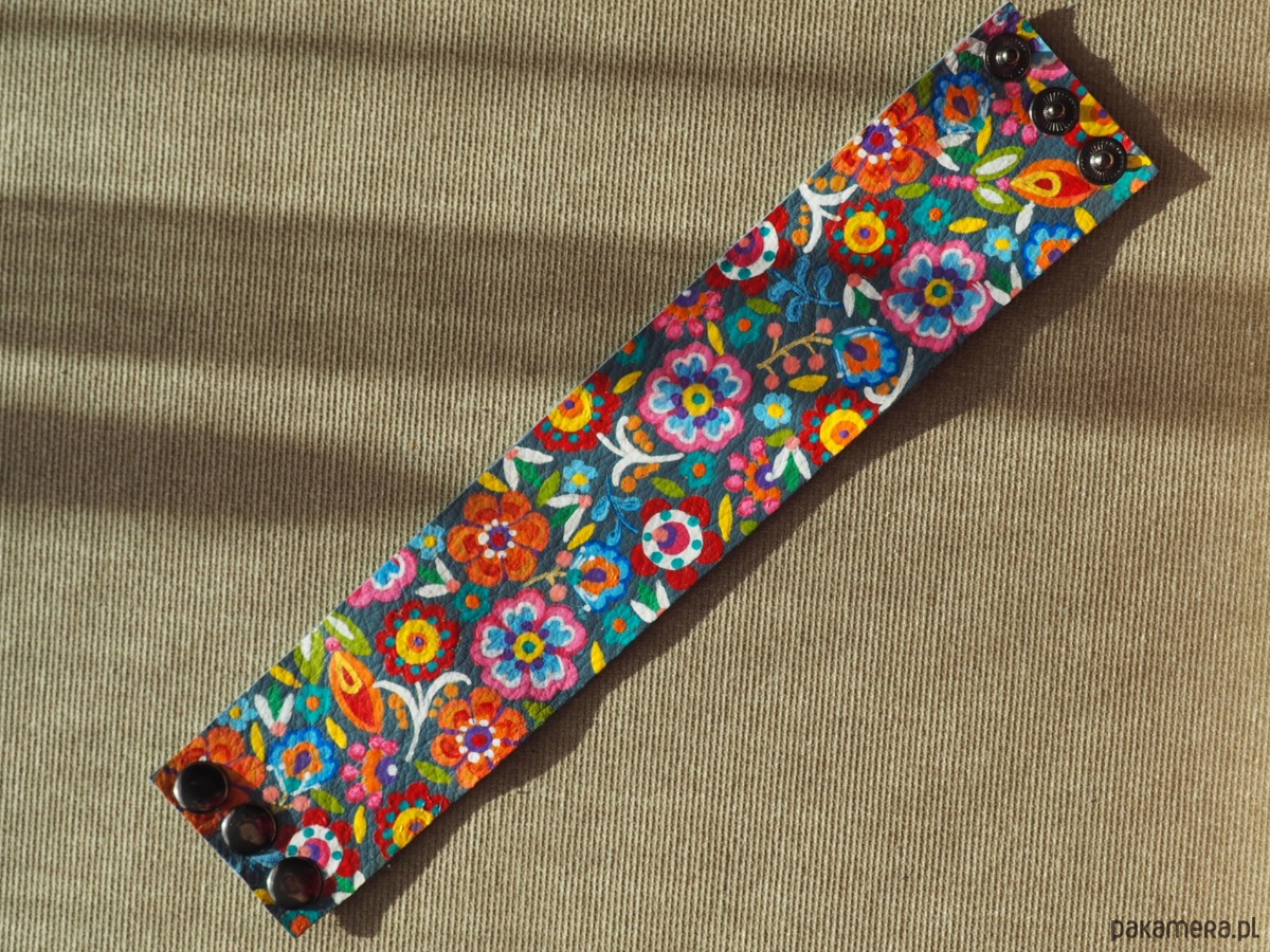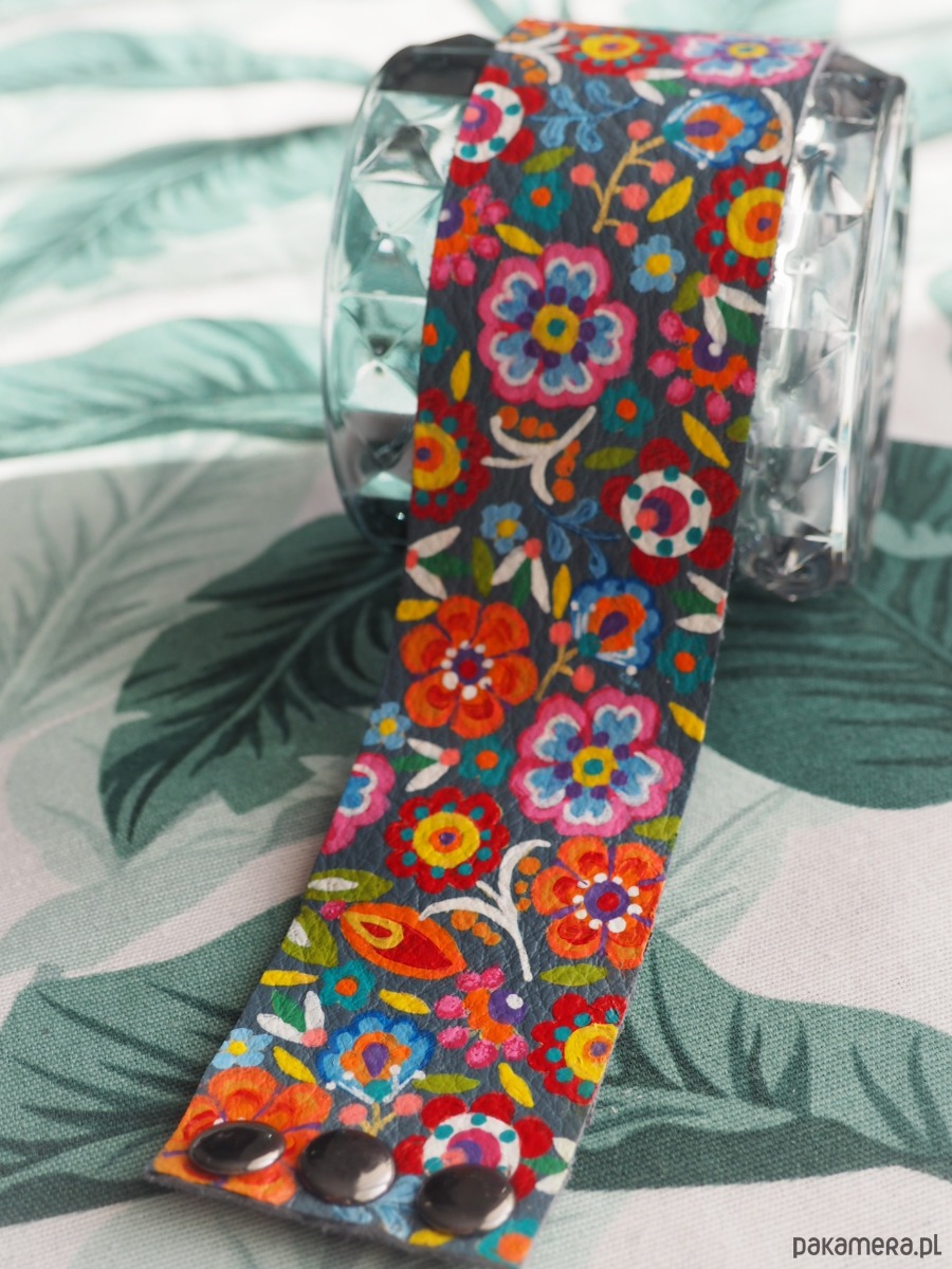 Ręcznie malowana bransoleta ze skóry naturalnej.