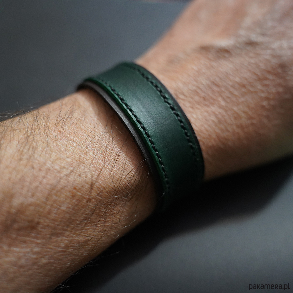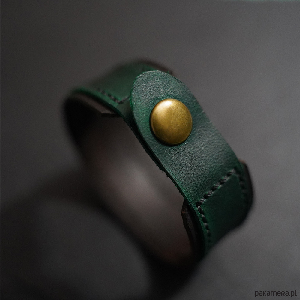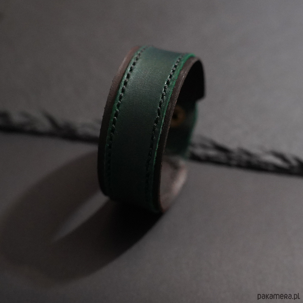 Skórzana bransoletka - szyta, zieleń i czekolada