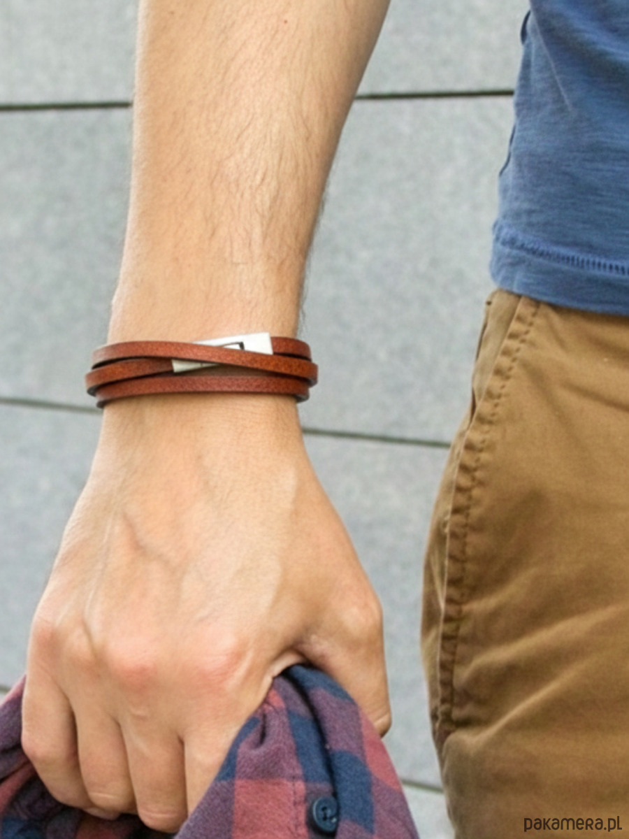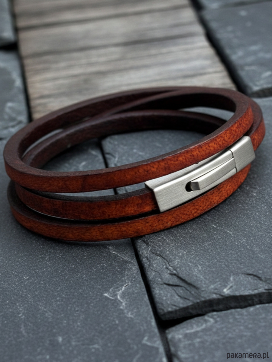 Skórzana brązowa bransoletka z rzemienia skórzanego - Argento