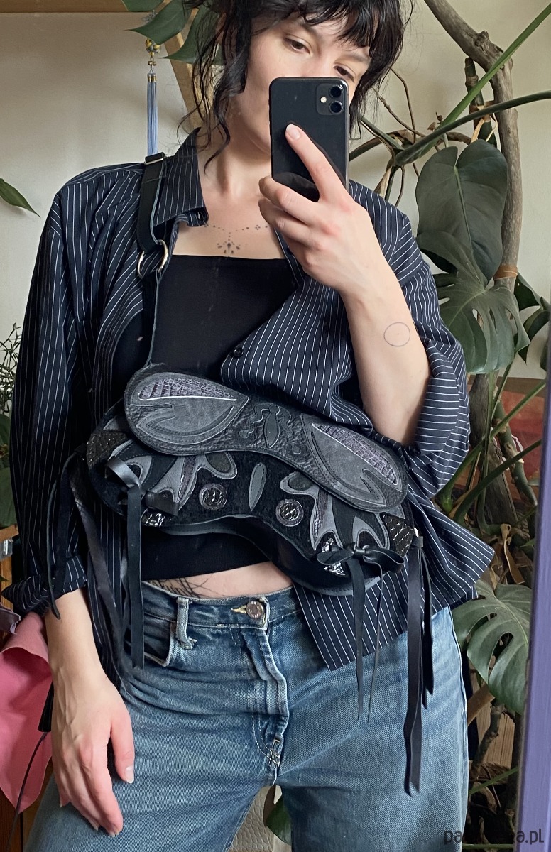 Z miłości do natury do tworzenia swoich torebek używam wyłącznie skóry naturalnej z drugiego obiegu, która jest materiałem wtórym tzw upcykling, ostatnio szyje też ze ścinek, które pozyskuje z dużych przedsiębiorstw przemysłowych dla których te kawałki skory są już odpadem - tzw gospodarka cyrkularna. Nic dzięki temu sie nie marnuje. Moje torby niespiesznie, dbając o każdy szczegół projektuje i szyje w swoim domowym mini studio, łącząc swoją pasję z niesamowitą przygodą jaką jest rodzicielstwo (dwie kochane acz wymagające istoty).